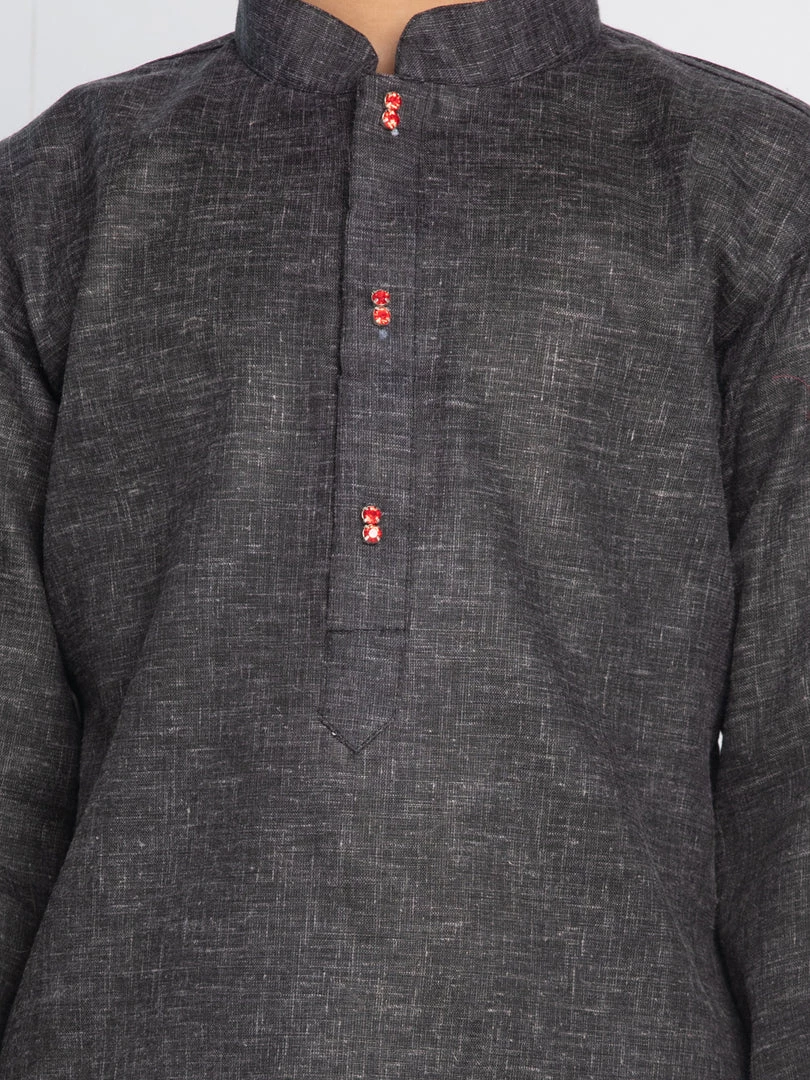 Grey solid Kurta, regular-length, has a Mandarin collar, Full sleeve, straight hem,