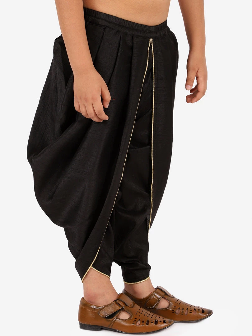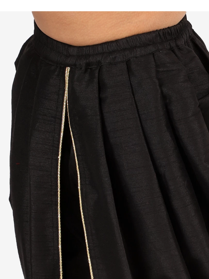 Black color solid ready to wear mid-rise dhoti with gather and overlapping layered details, has elasticated waistband