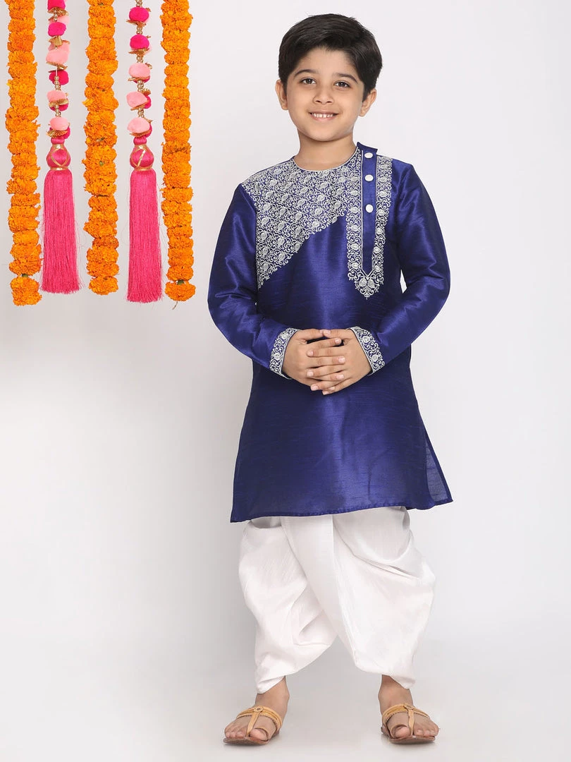 VASTRAMAY Boys’ Blue And White Kurta And Dhoti Set