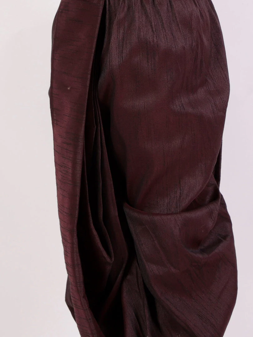 Burgundy solid ready-to-wear mid-rise silk-blend dhoti in a traditional pattern has an elasticated waistband.