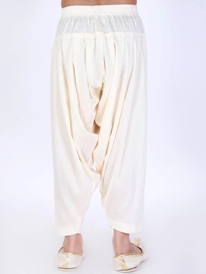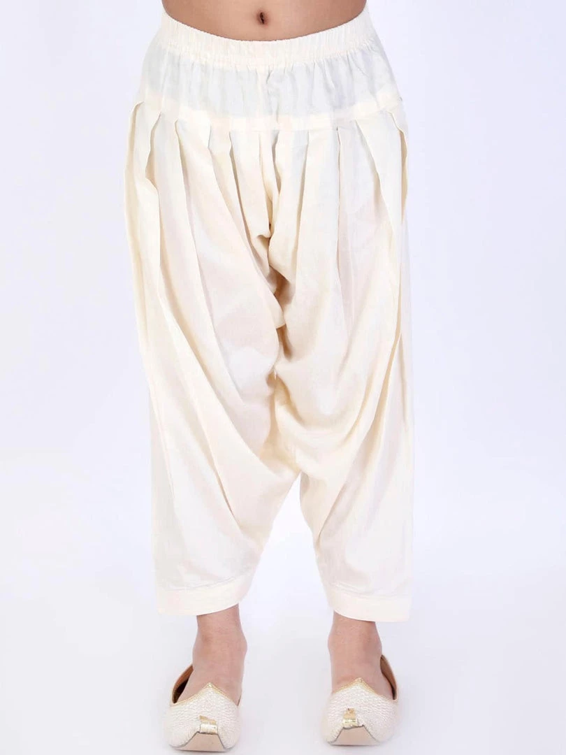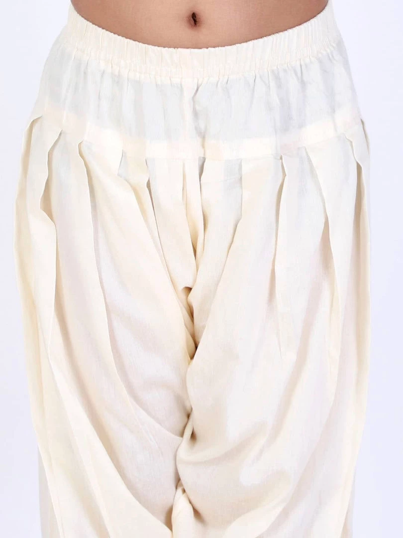 Cream-coloured solid loose-fit mid-rise patiala with gathers and pleats, has a waistband with slip-on closure