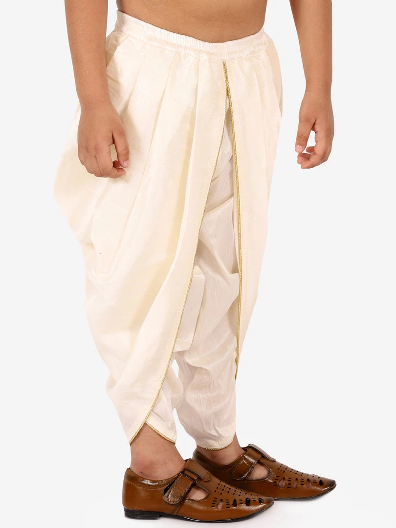 Cream color solid ready to wear mid-rise dhoti with gather and overlapping layered details, has elasticated waistband