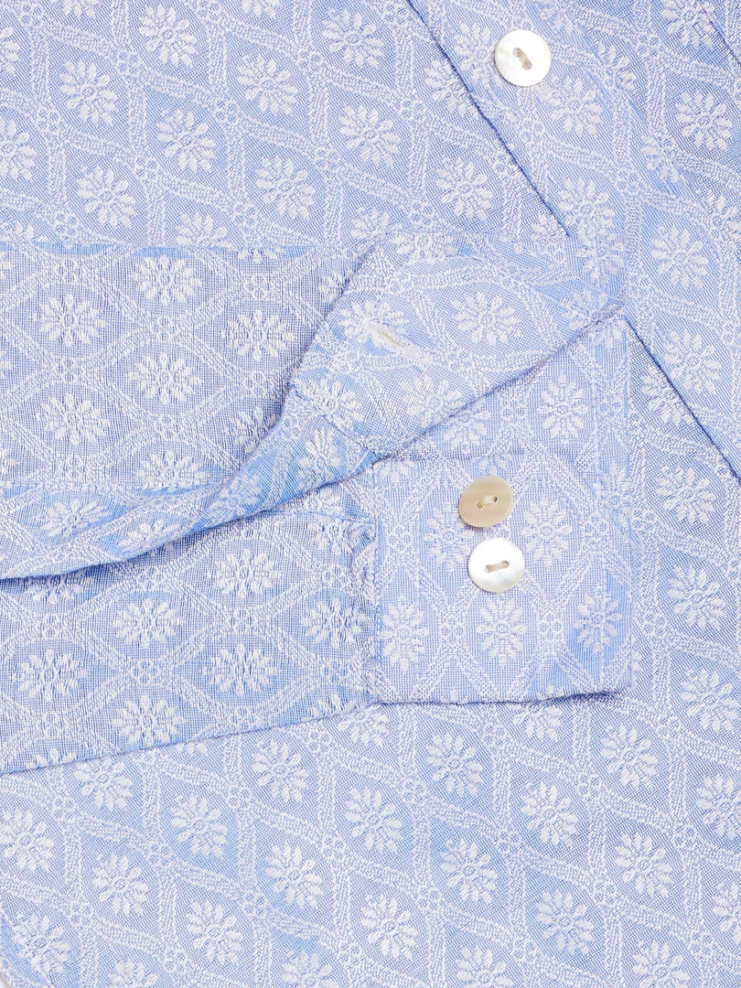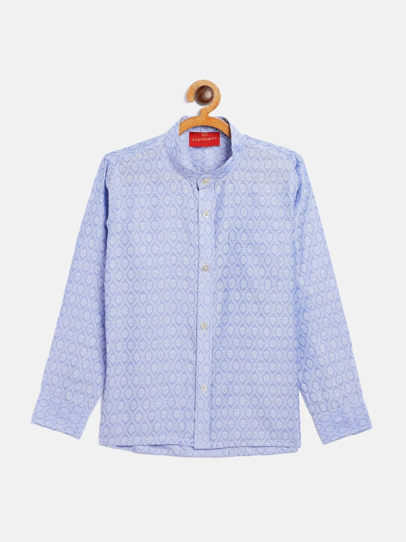 Lavender regular-fit jacquard shirt, has a mandarin collar, a full button placket, long sleeves, Straight hemline.