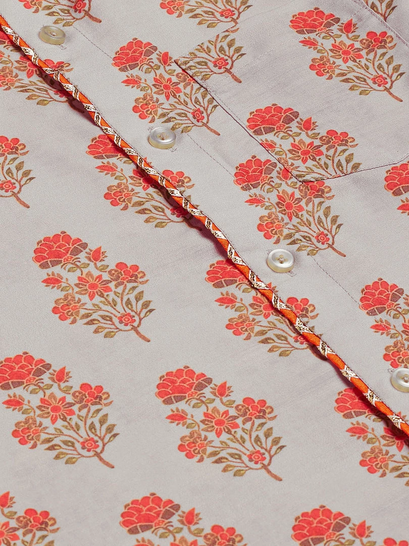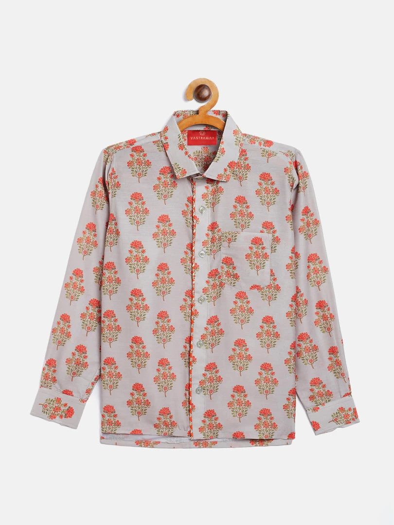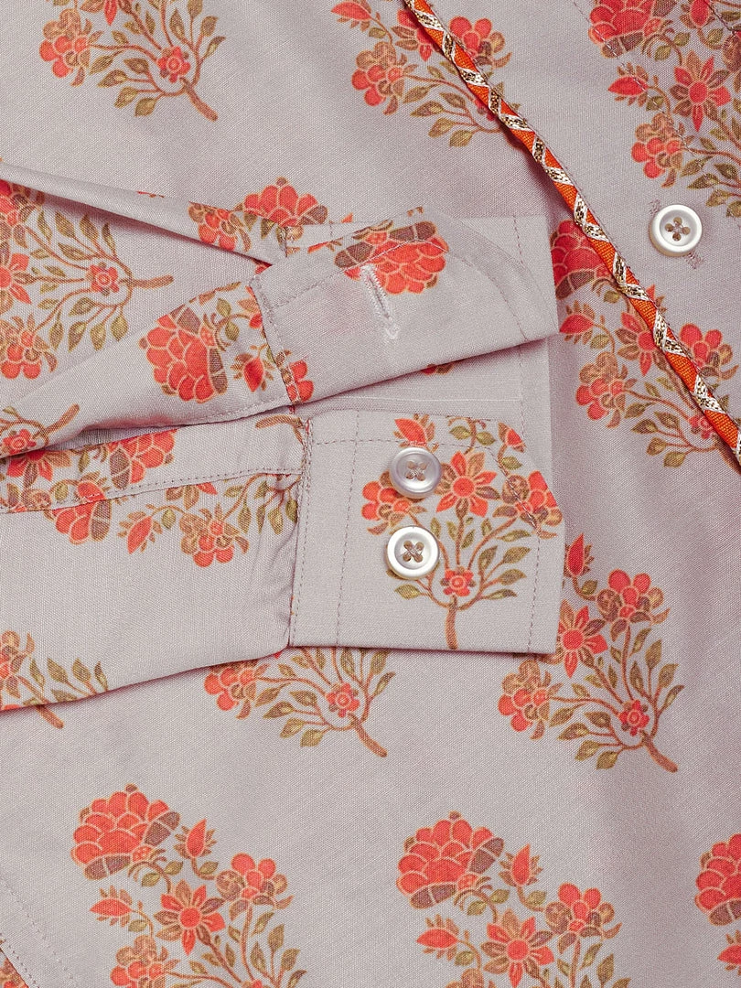 Multicolor-Base-Beige regular-fit floral printed shirt, has a shirt collar, a full button placket, long sleeves with cuff, Straight hemline.