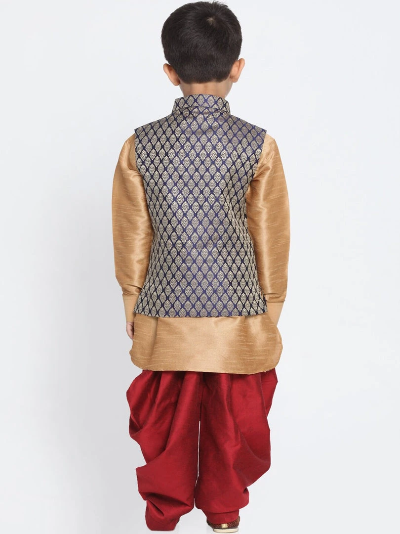 Silk Blend Pathani Style Kurta and Dhoti Pant Set With Woven Design Nehru Jacket