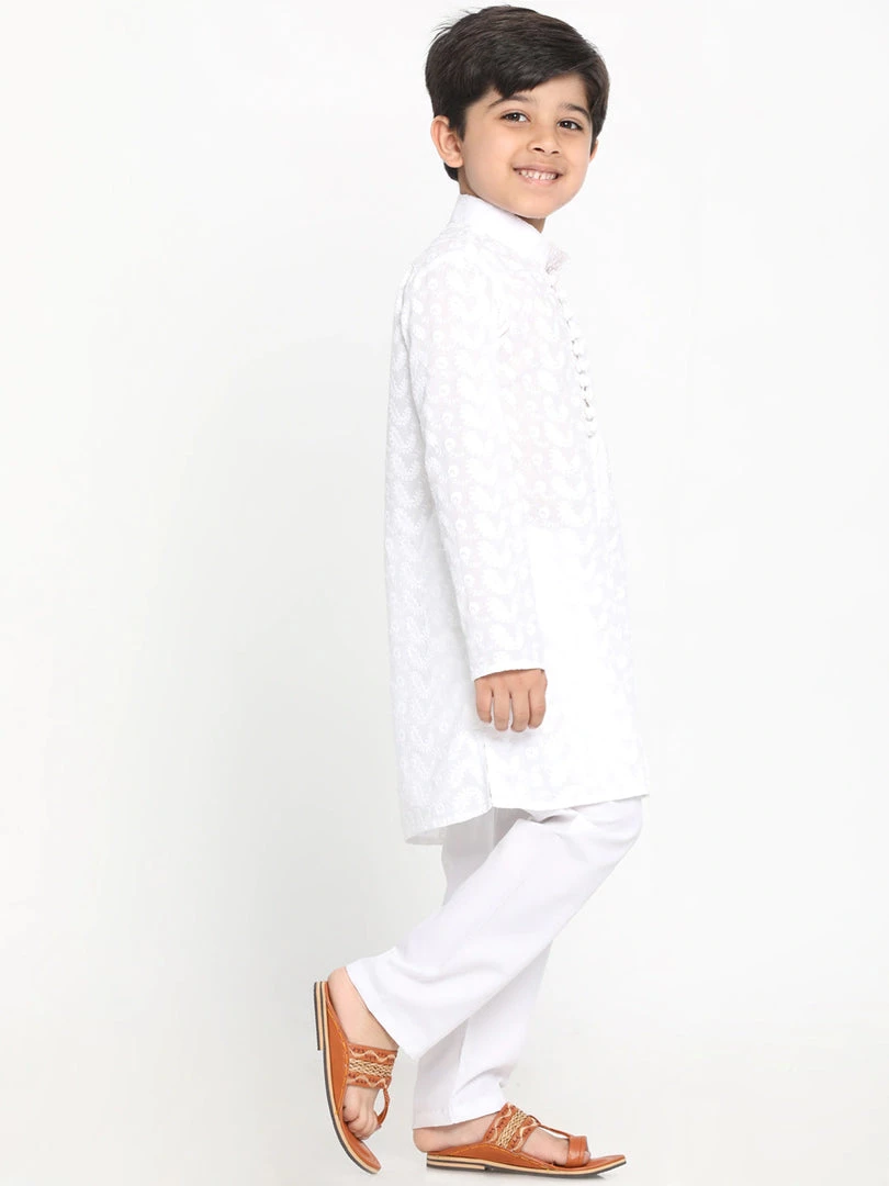 this kurta is a must-have addition to your Lil one’s ethnic wardrobe. Showcase your little boy’s unique personal style in this off-white kurta set from VASTRAMAY.