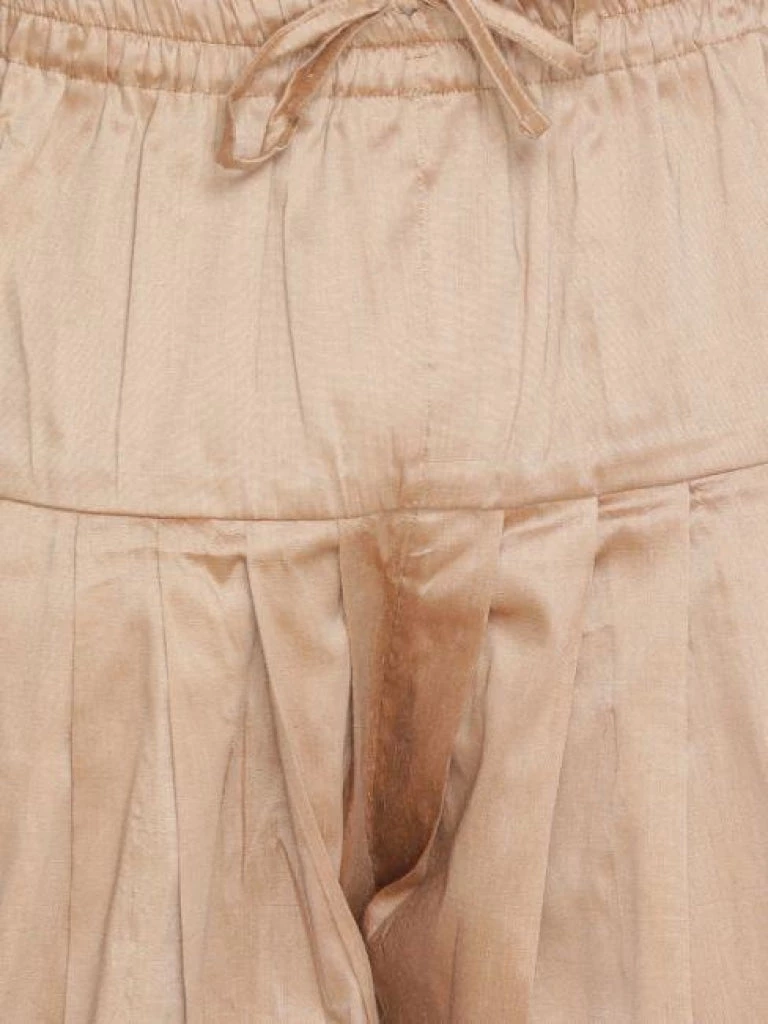 Golden solid dhoti pant, has elasticated waistband and drawstring closure