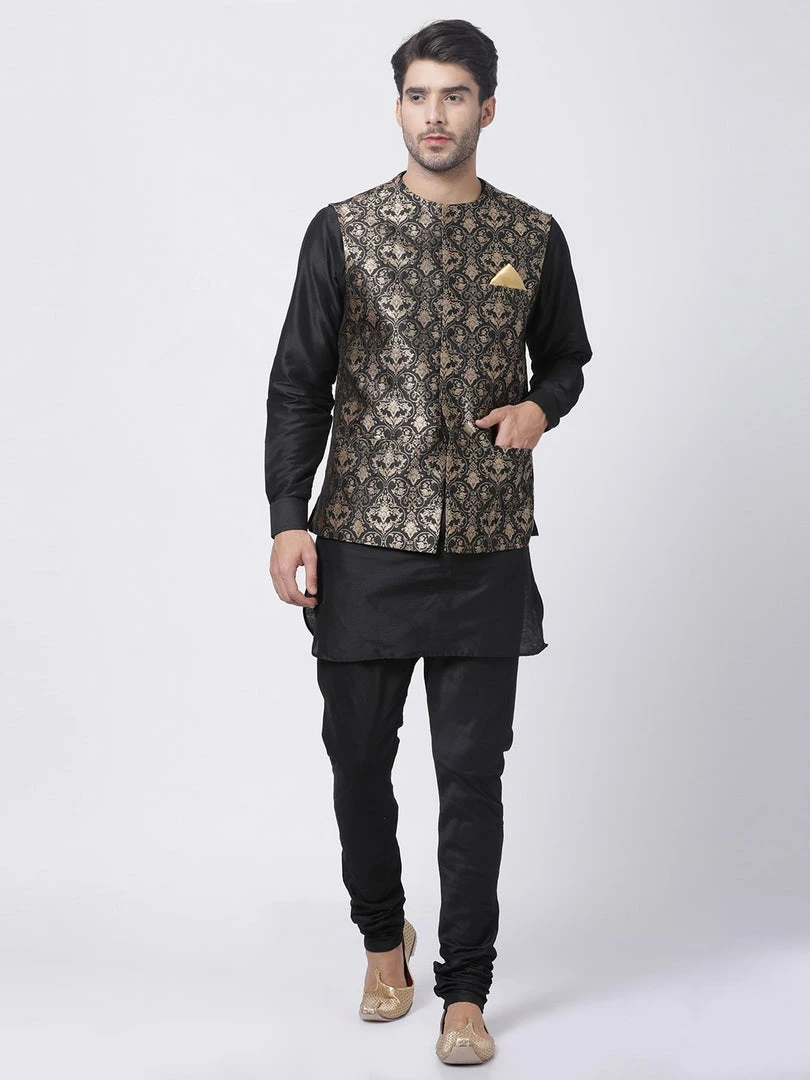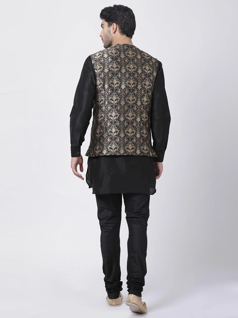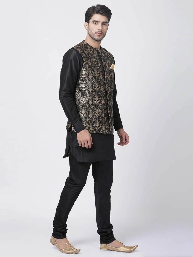 Black Solid kurta with Black solid Pyjama and Black Nehru jacket