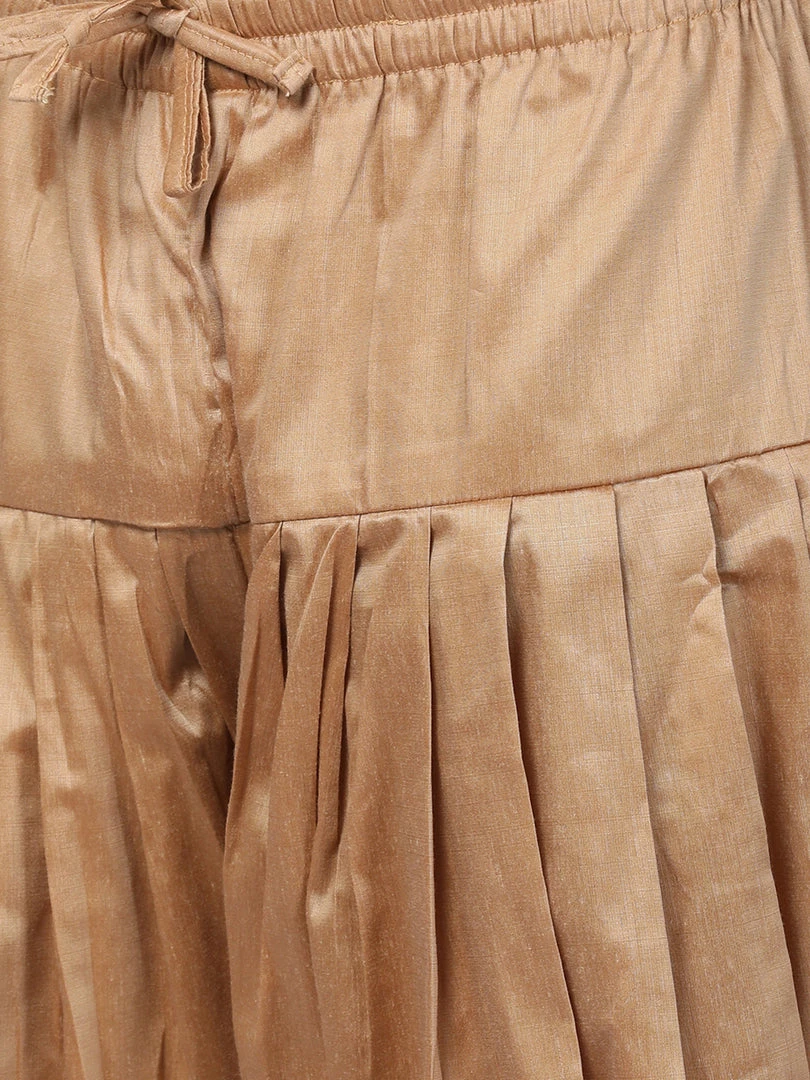 Gold toned solid dhoti pant, has elasticated waistband and drawstring closure