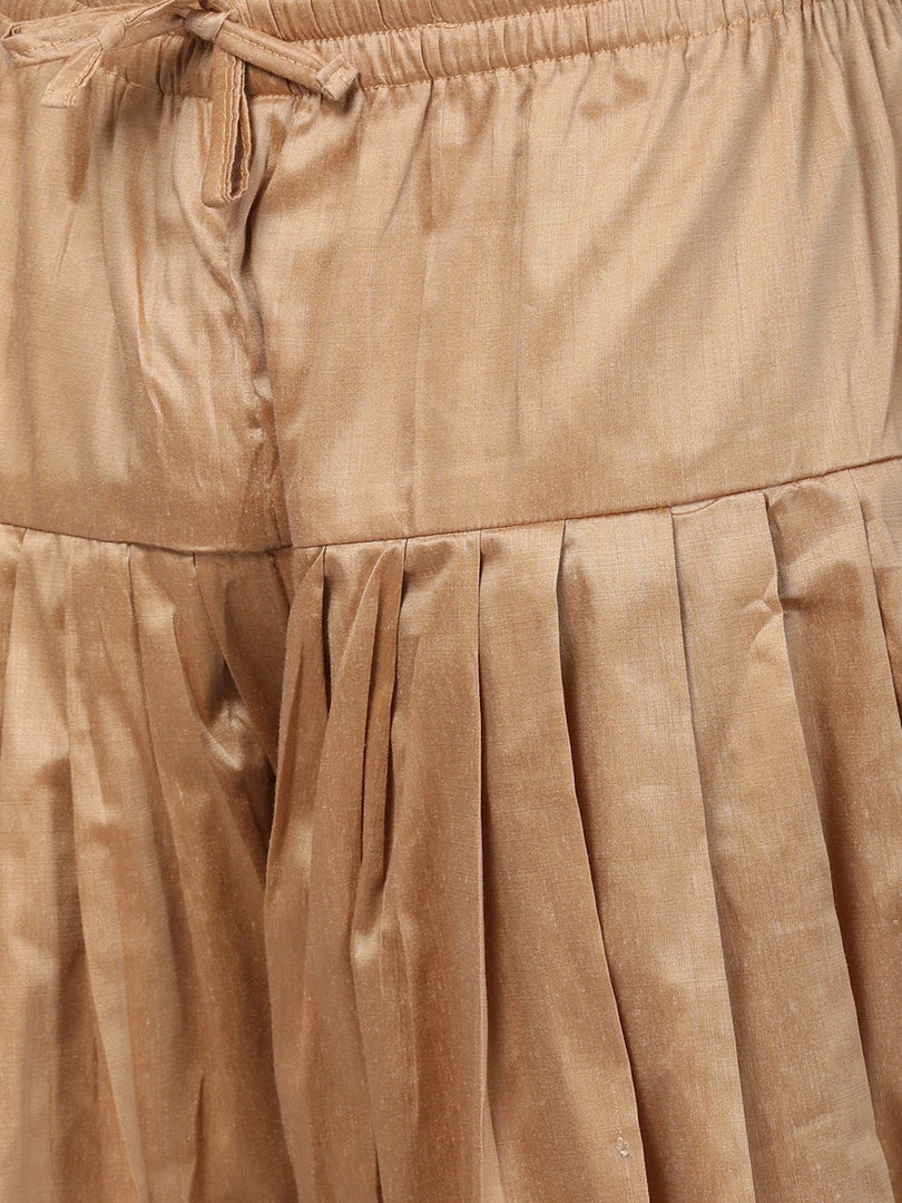 Golden solid dhoti pant, has elasticated waistband and drawstring closure