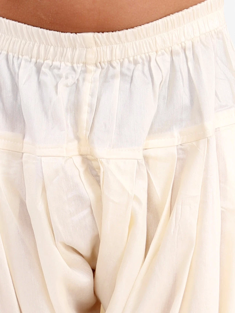 Cream color solid dhoti pant, has elasticated waistband and drawstring closure