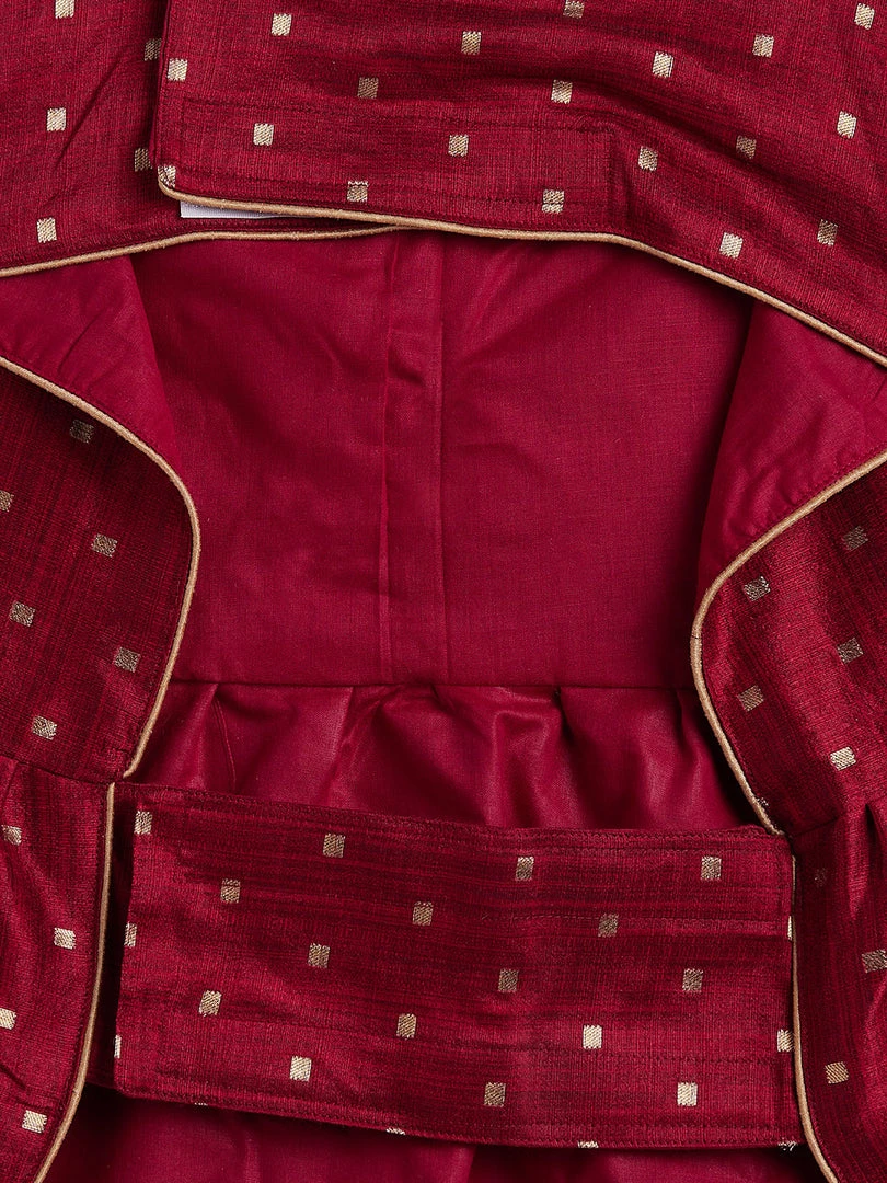 Vastramay Dogs’ Maroon And Gold Silk Blend Dress Ethnic Wear For Pets
