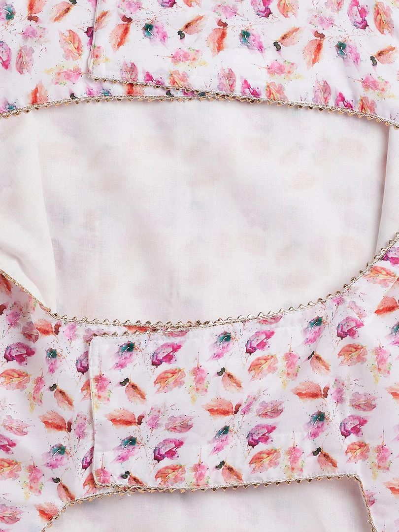Multi color white base abstract printed regular jacket, has a round neck, sleeveless, adjustable velcro strap on the neck and chest, pocket with pocket square.