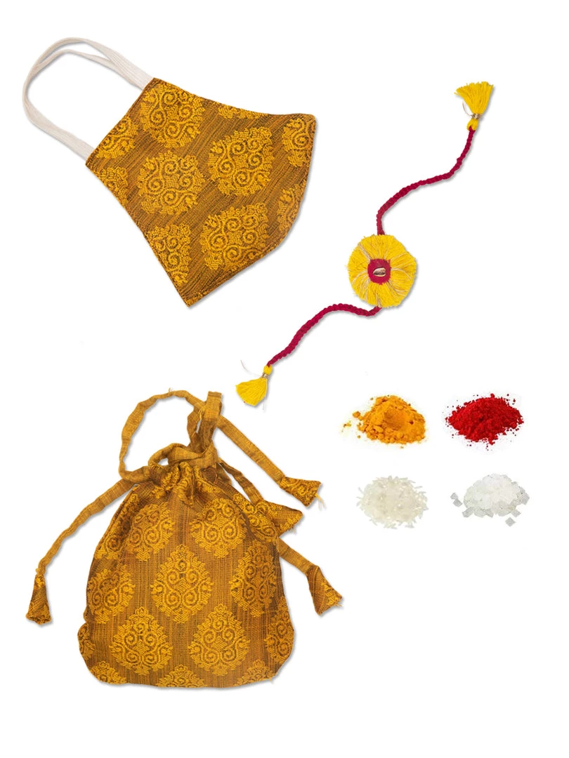 Vastramay Eco-Friendly Cotton Raksha Bandhan Rakhi, Mask And Potli Set
