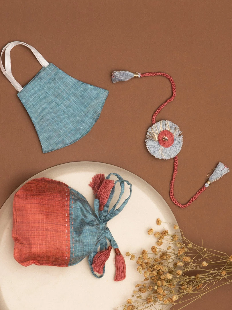 Fabric: Silk Blend| For: Adults | 2Ply Mask | Multipurpose Potli | Eco Friendly Cotton Rakhi