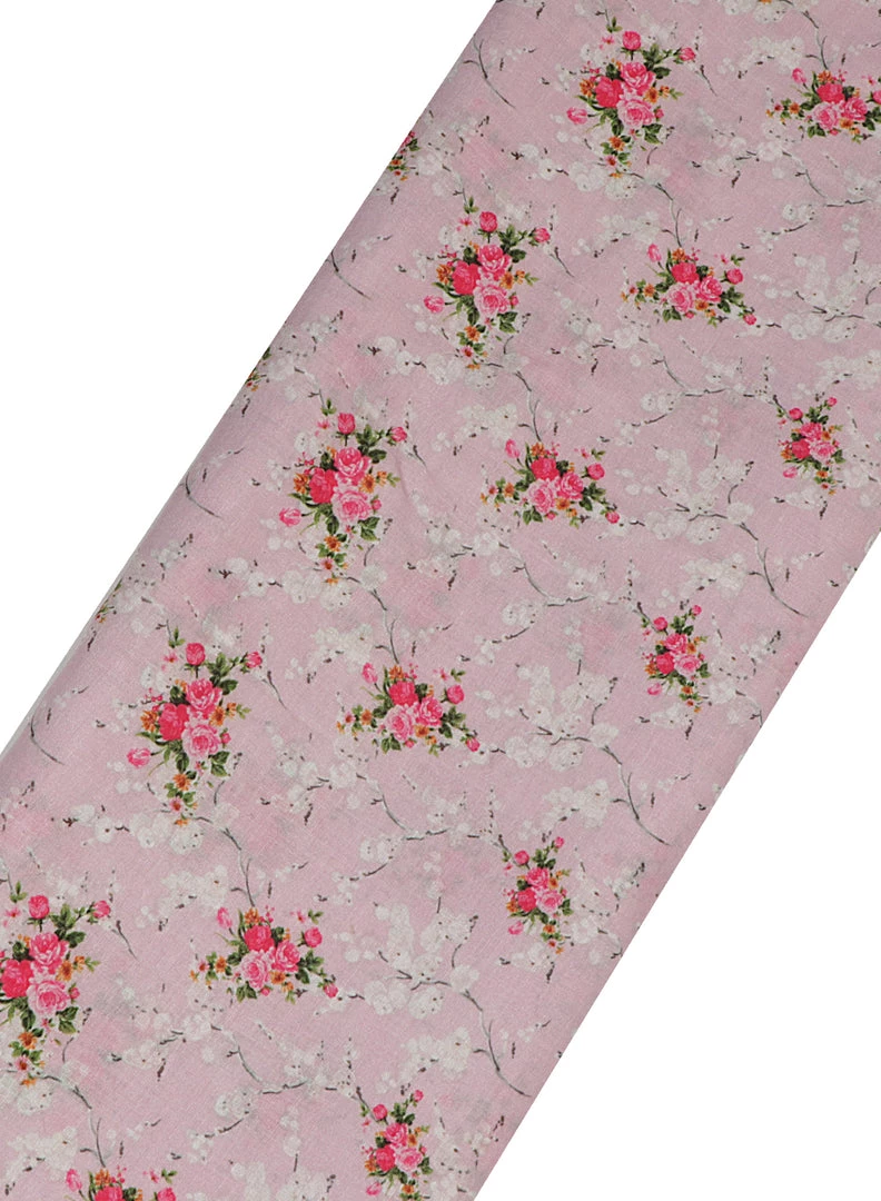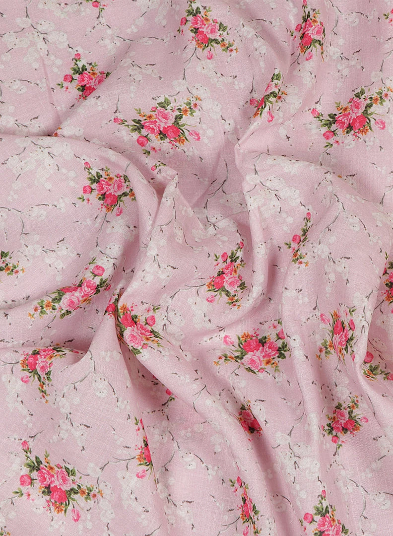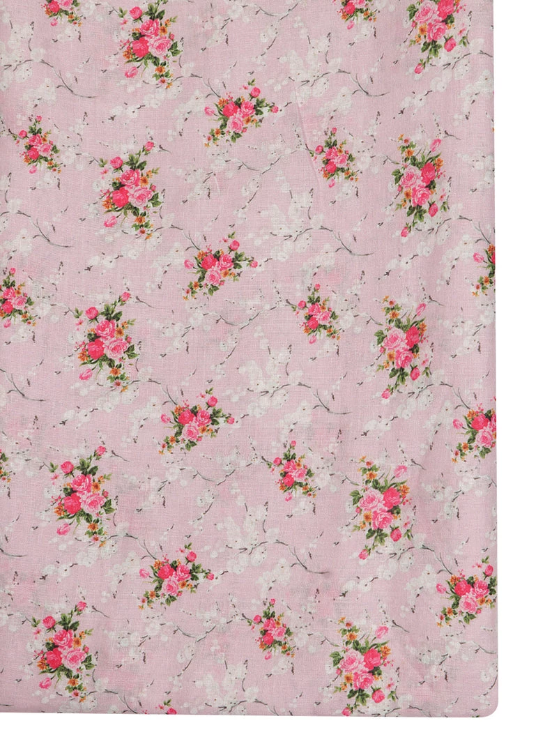 Floral printed Baby Pink and Rose Pink Cotton Linen Blend 44 inch width fabric.