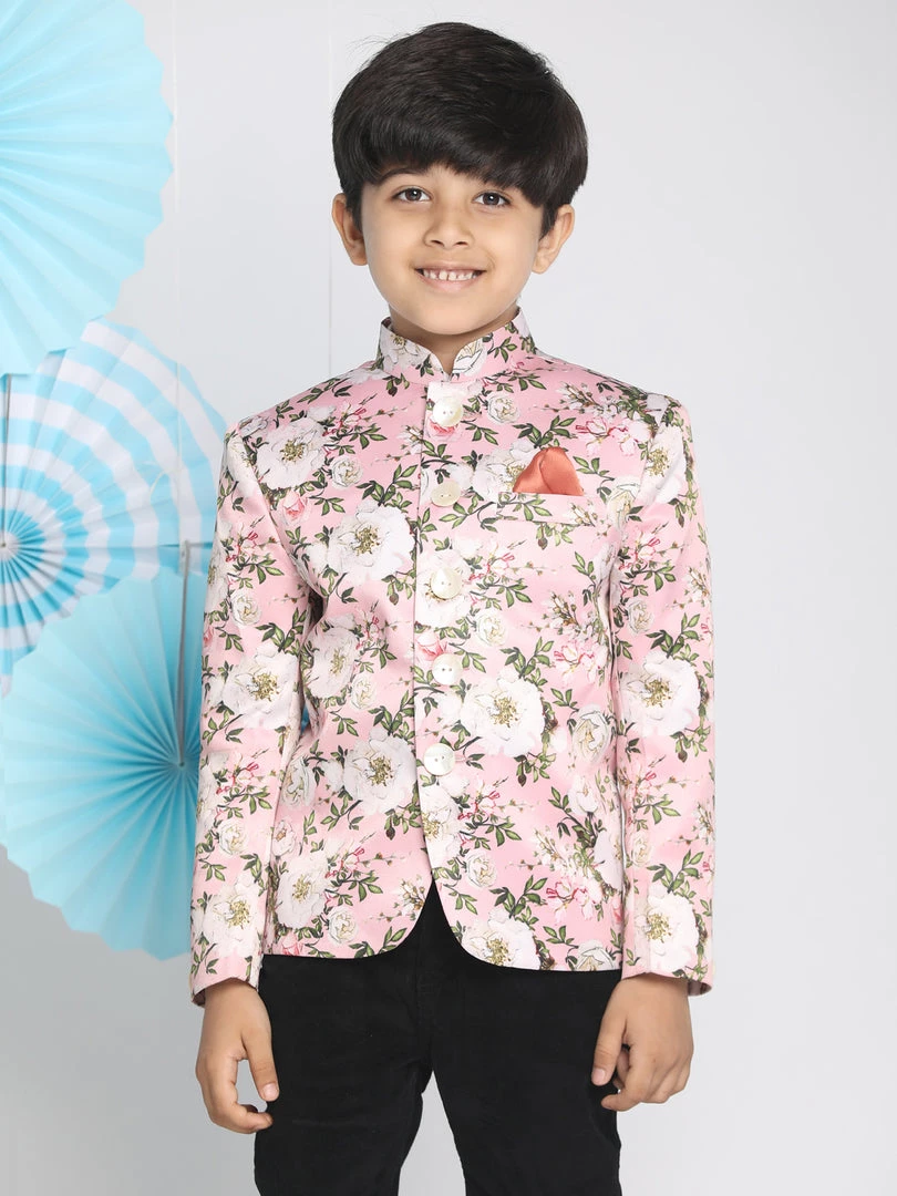 Multicolor-base-pink, Digitally printed Coat, regular-length, has a Mandarin collar, Full sleeve, Straight hem, and one pocket with a pocket square.