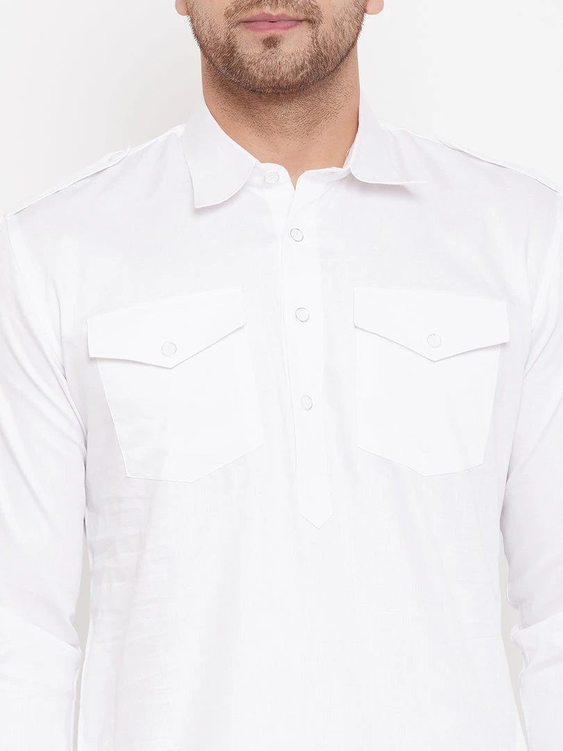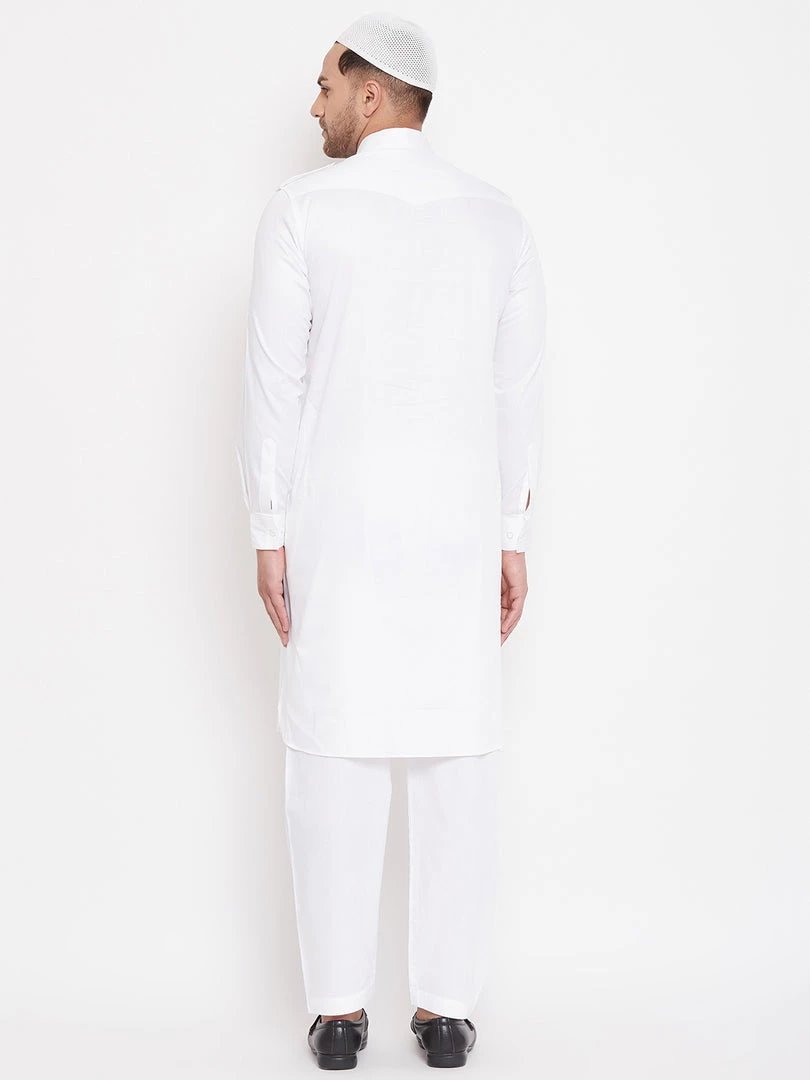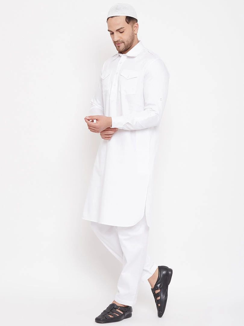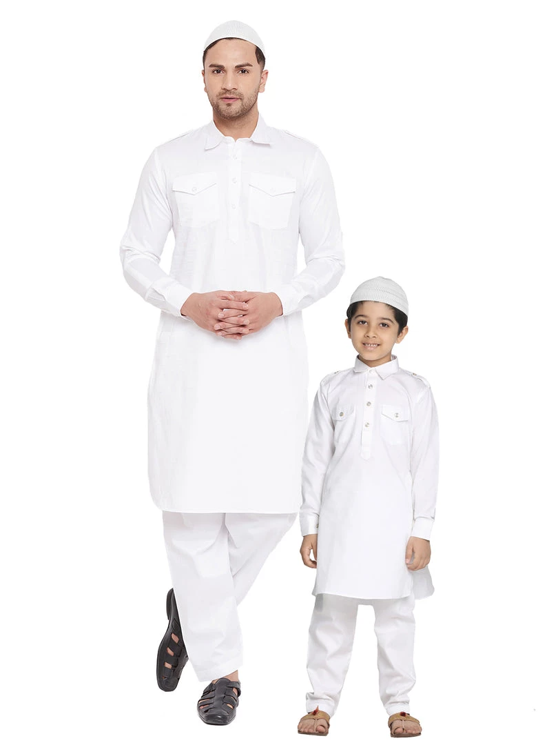 Vastramay Kurta Pyjama Baap Beta White Cotton Pathani Kurta & Pyjama Set