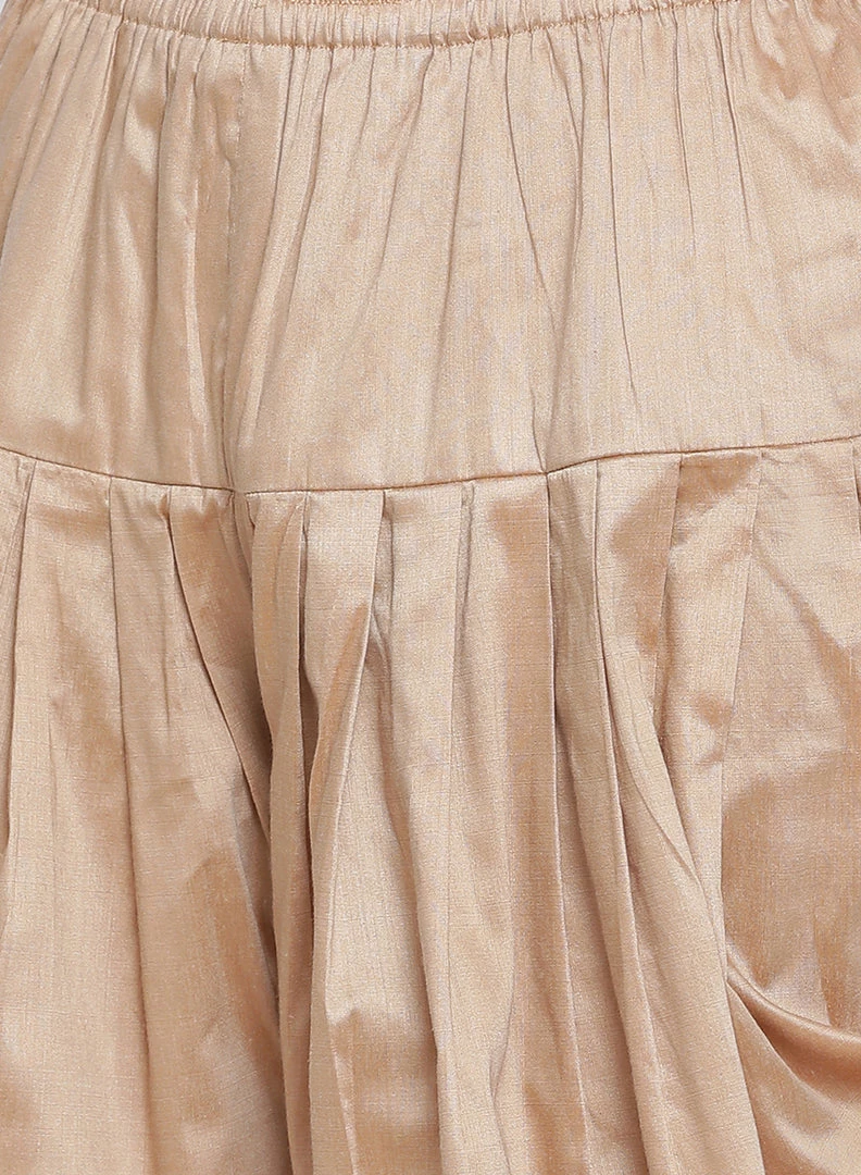 Beige solid dhoti pant, has elasticated waistband and drawstring closure