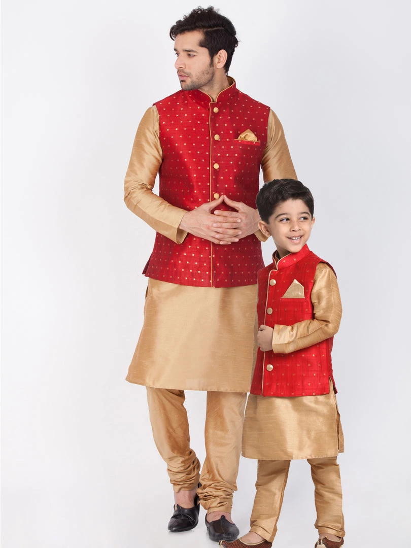 Sport this classic kurta jacket set from VASTRAMAY this season. Dress this piece up with your favorite accessories and head out to any family event in style.