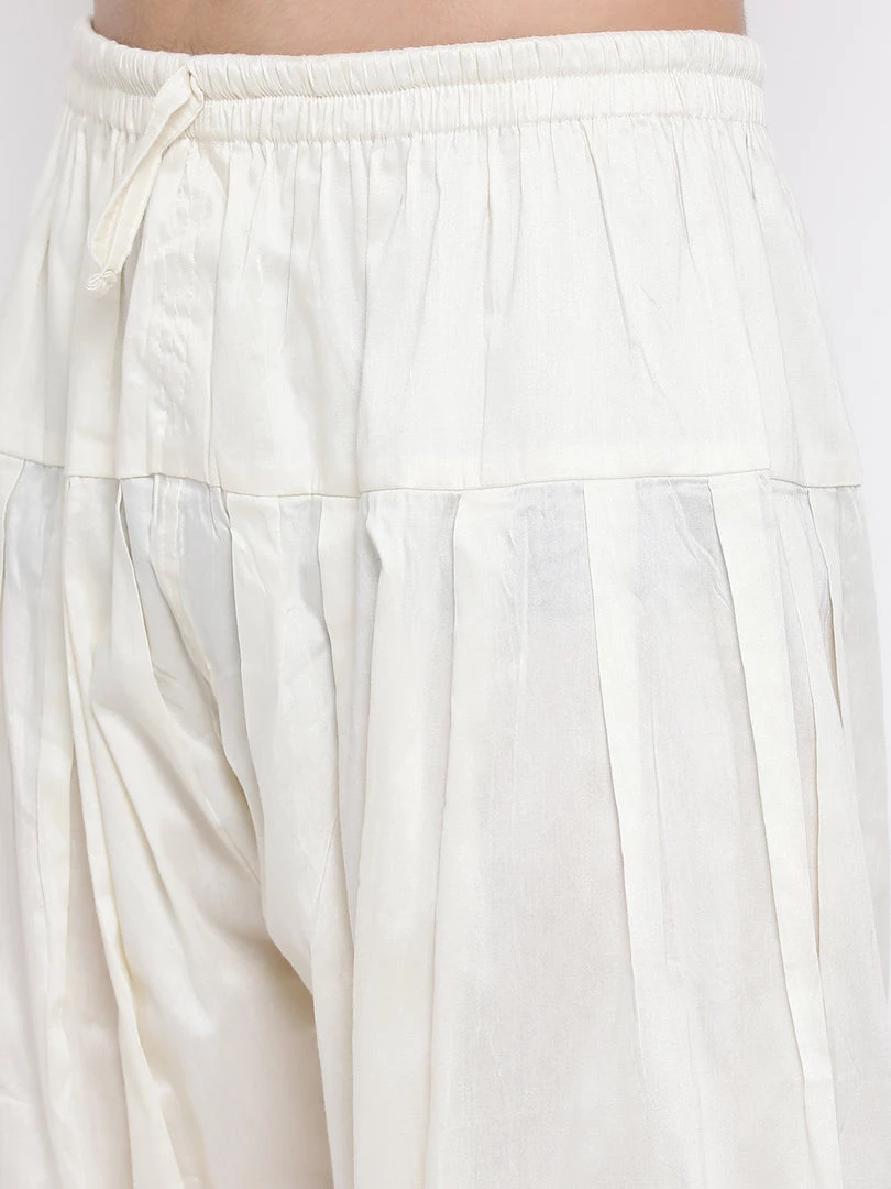 White solid dhoti pant, has elasticated waistband and drawstring closure
