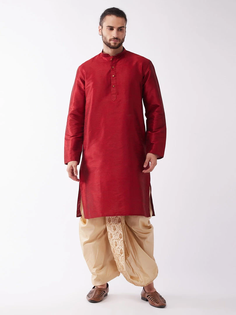 Maroon and Gold Solid kurta with Embroidered dhoti pant set