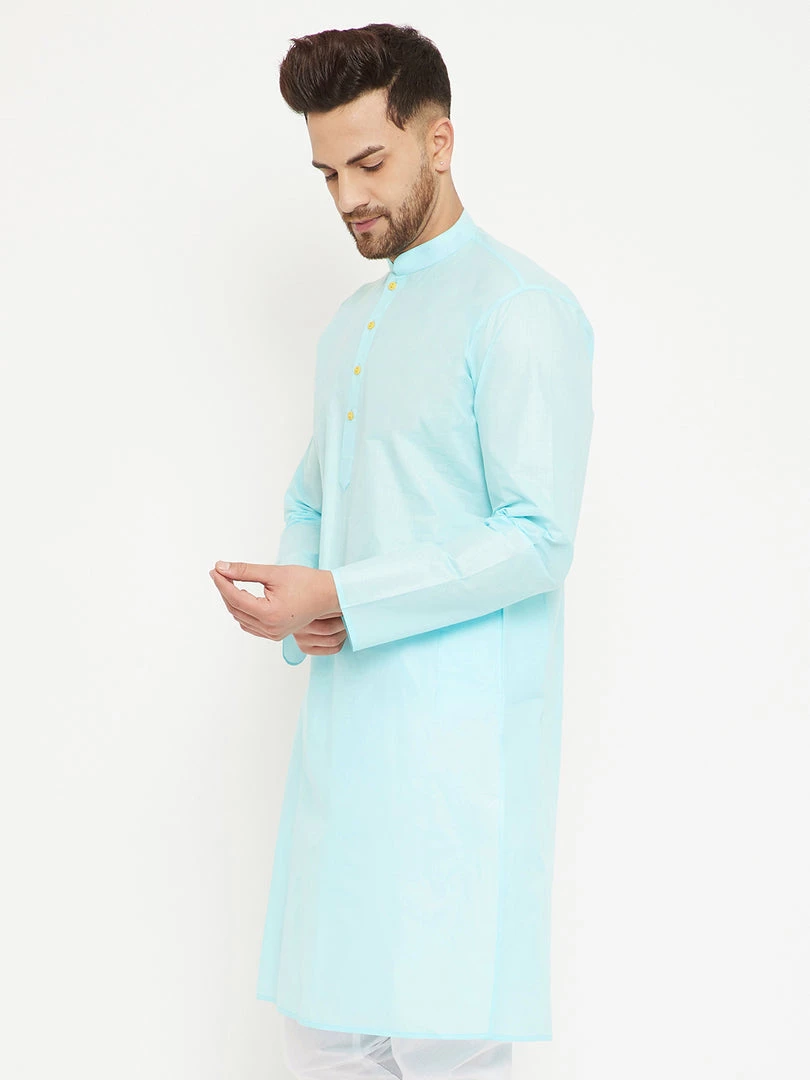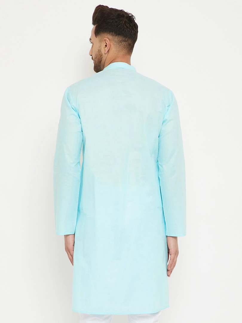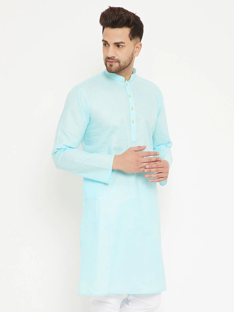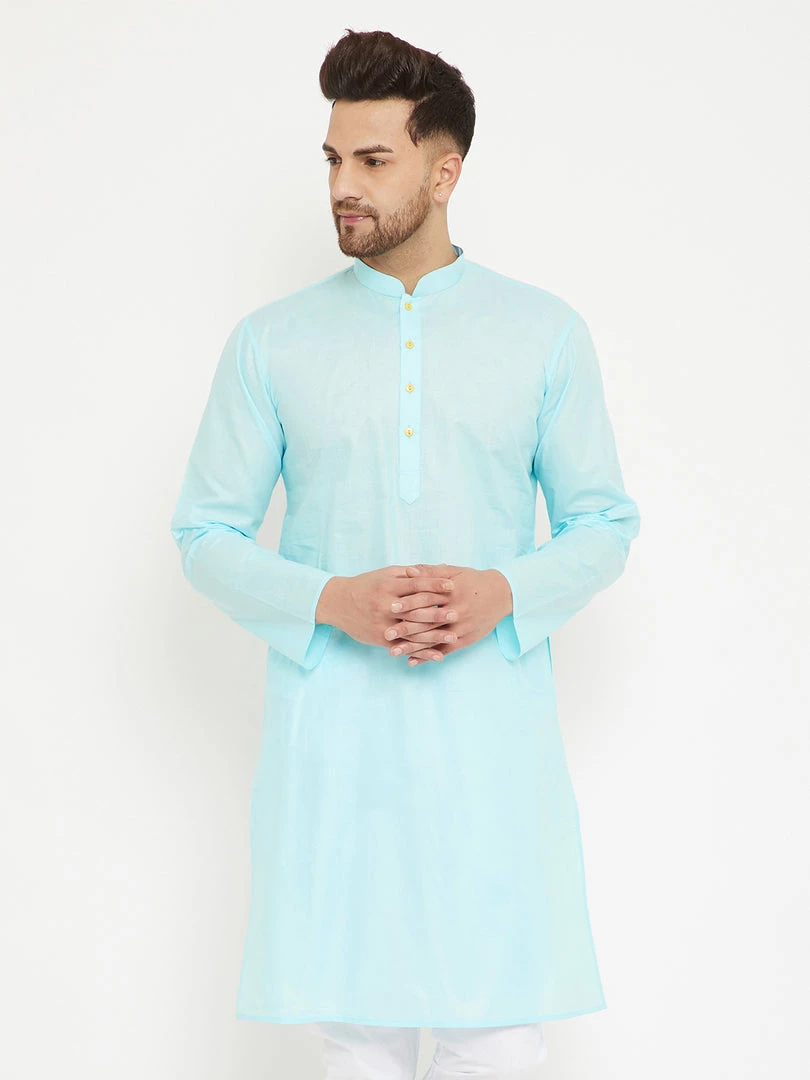 Aqua Solid straight Knee length kurta, has a Mandarin Collar, button placket, long sleeves, Straight hem, Side slits.