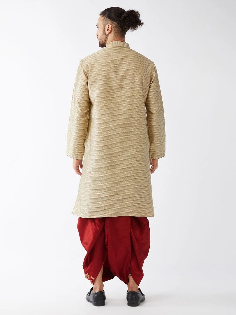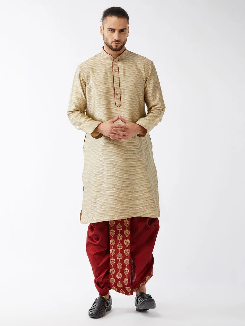 Beige and Maroon woven kurta with Embroidered dhoti pant set