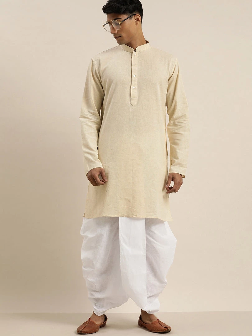 Beige solid Kurta with Dhoti Pants