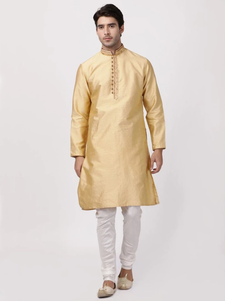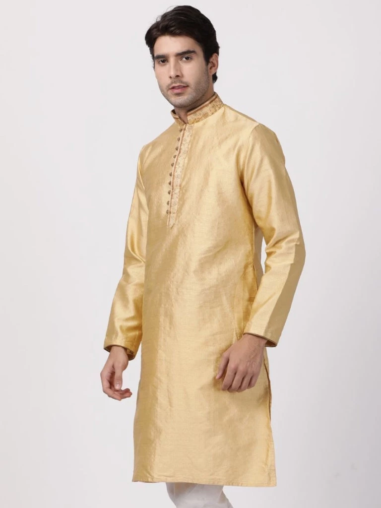From VASTRAMAY, this kurta is a great way to show off your style. Dress this piece up with your favorite accessories and head out to any family event in style.