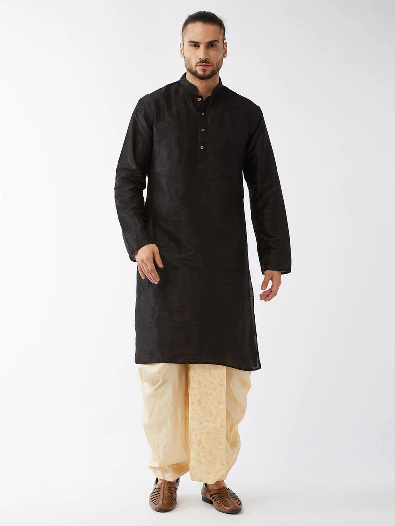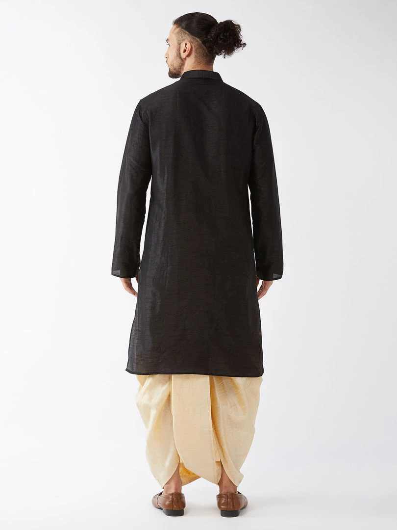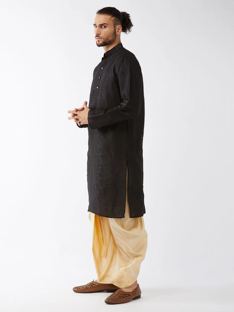 Black and Gold Solid kurta with Embroidered dhoti pant set