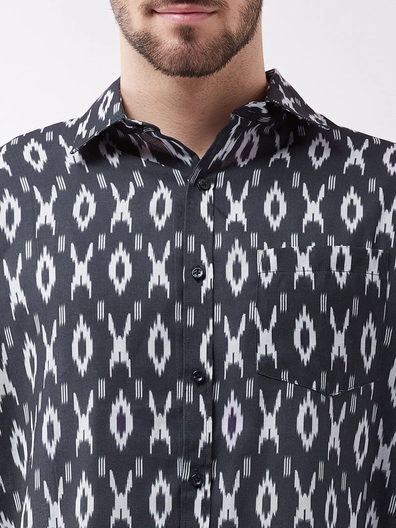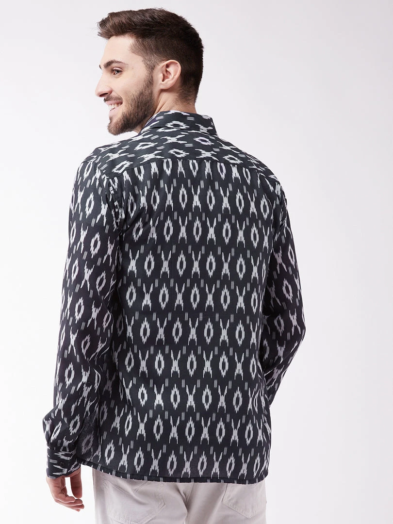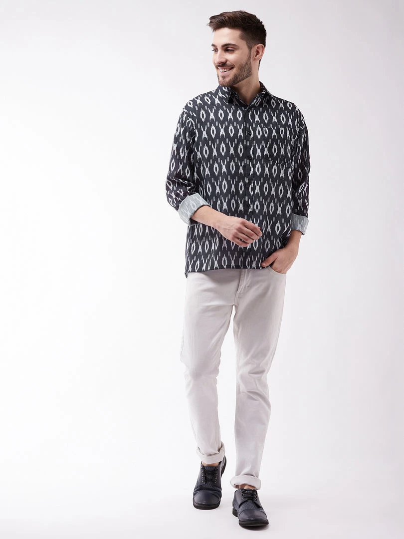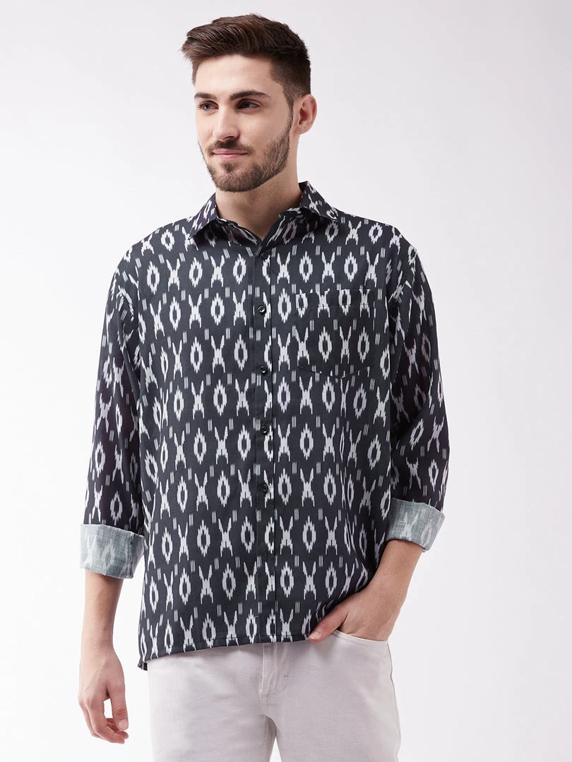 Traditional Ikkat Design Classic Shirt, has a shirt collar, Long sleeves, straight hem, one patch pocket