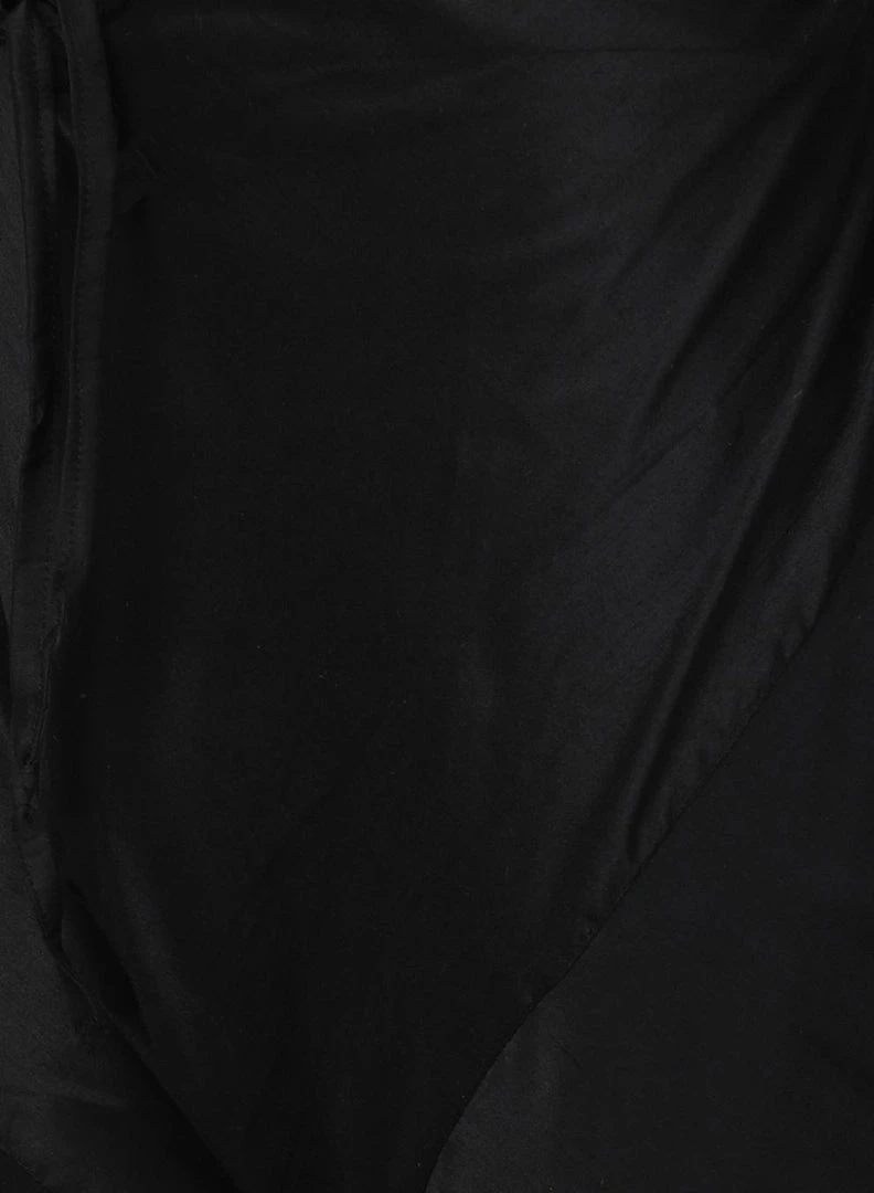 Black woven straight knee-length kurta, has a mandarin collar, button placket, long sleeves, straight hem