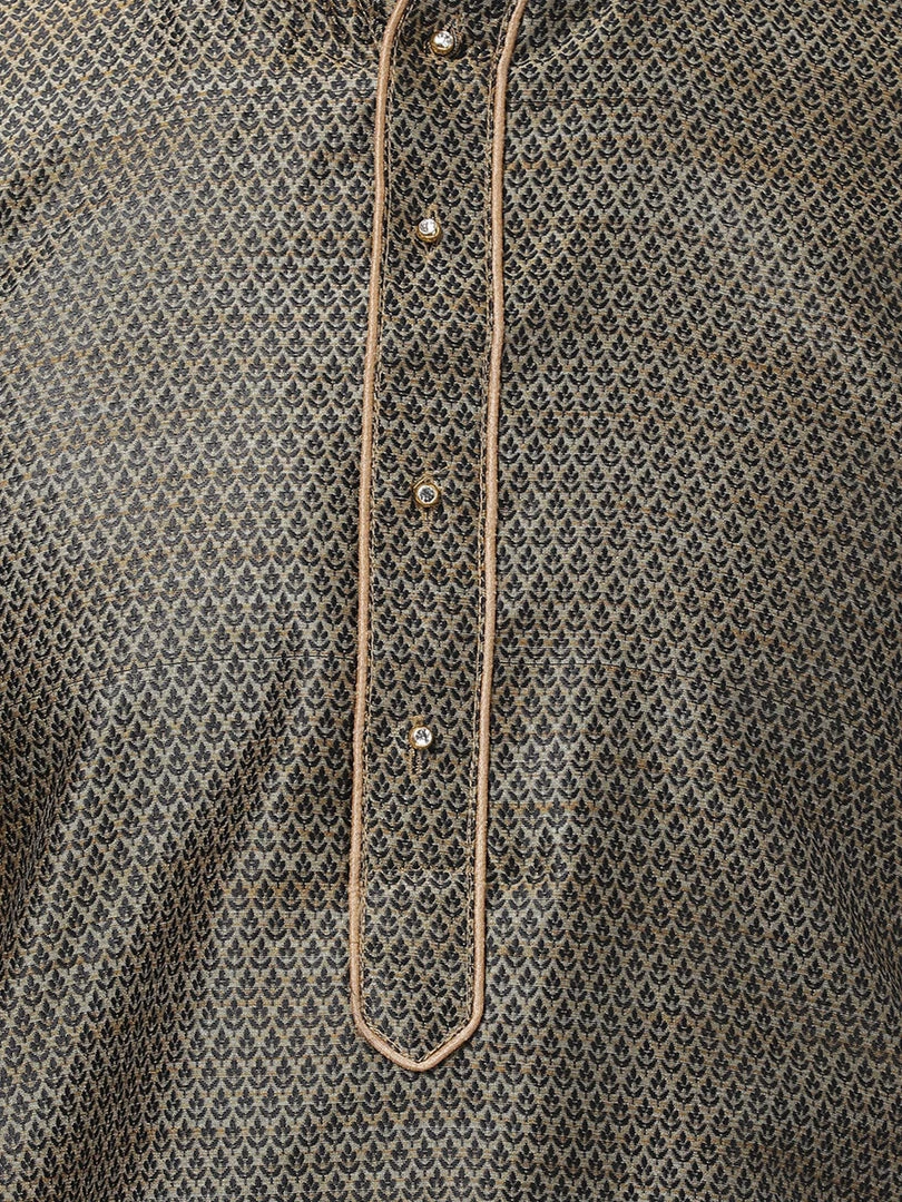 Black and beige woven straight knee length kurta, has a mandarin collar, button placket, long sleeves, straight hem