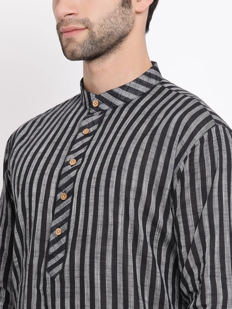 Vastramay Men’s Black Pure Cotton Kurta And Pyjama Set
