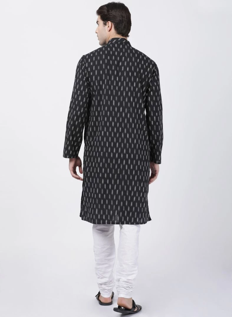 Black and white woven kurta with churidar.