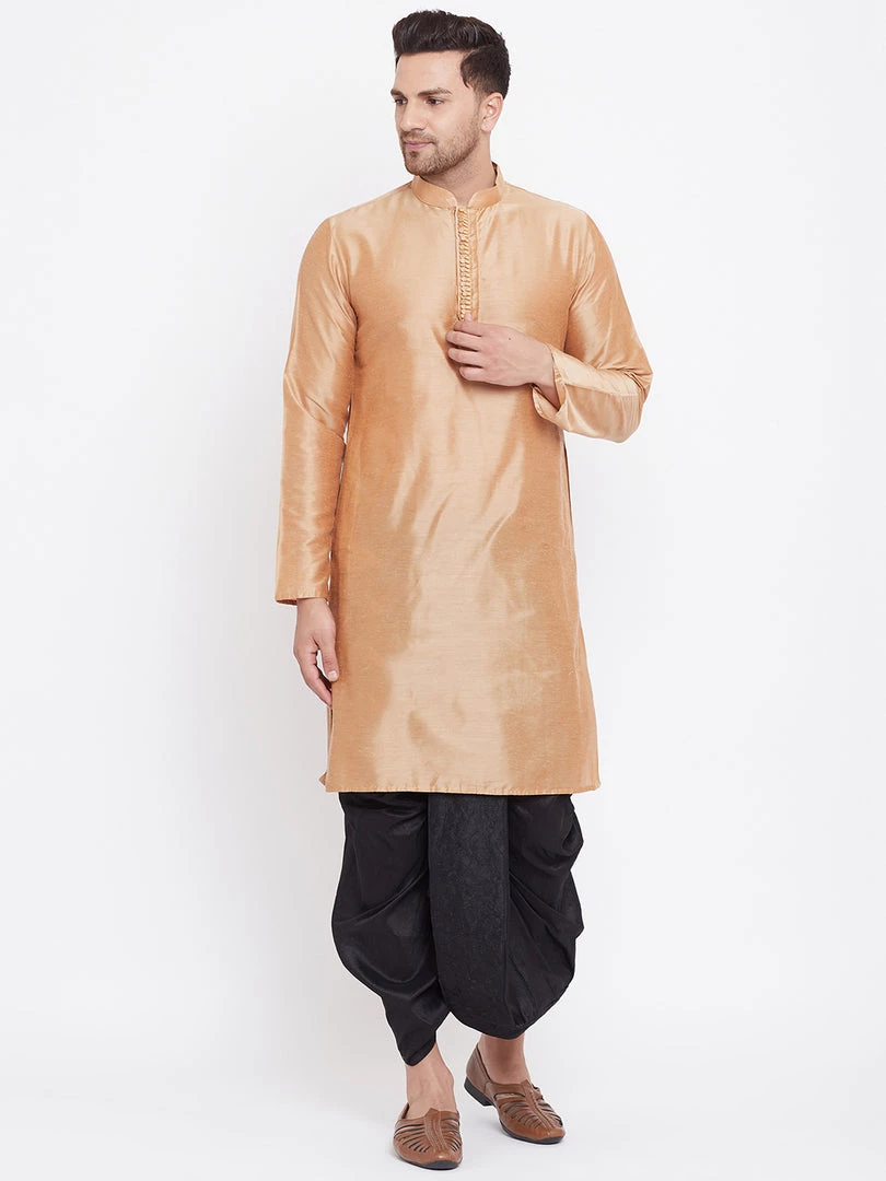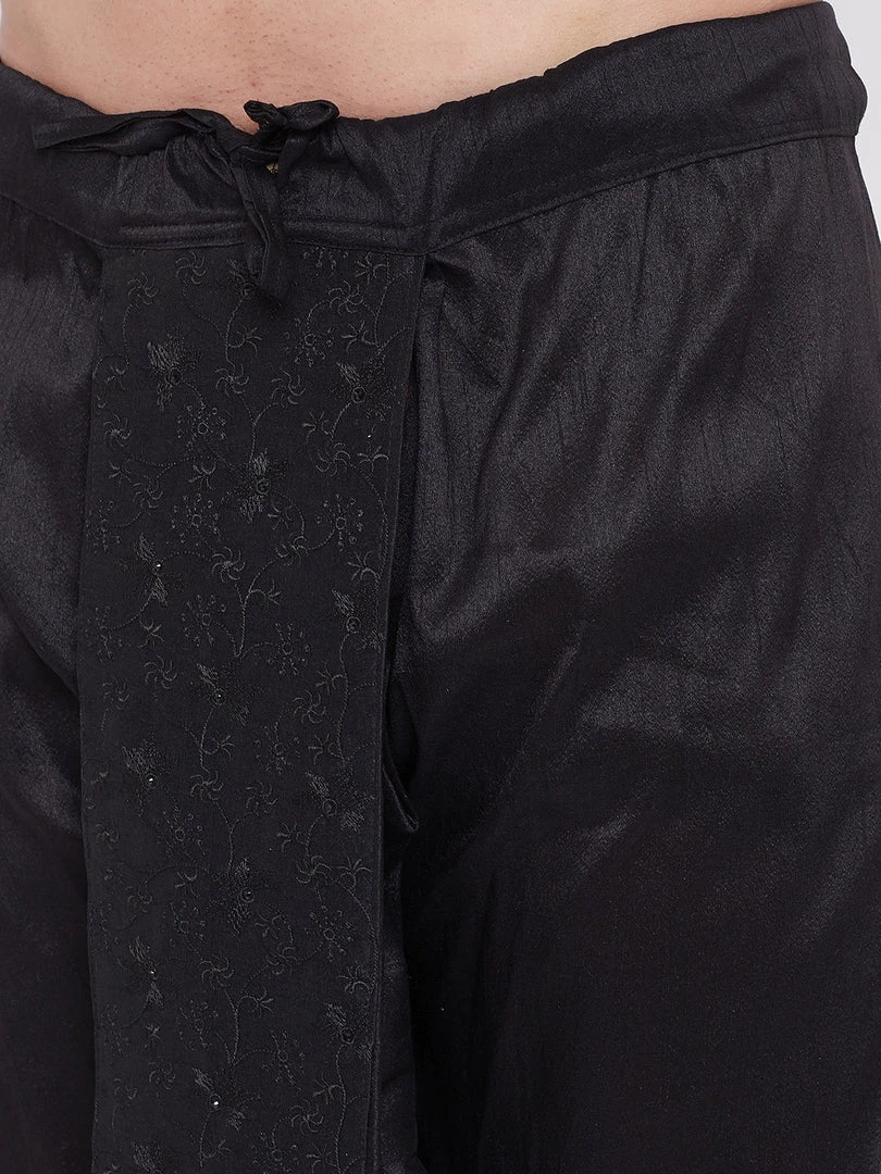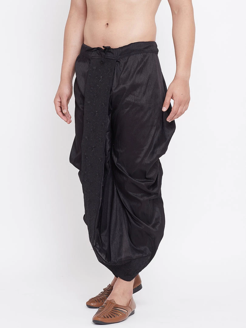 Vastramay Men’s Black Silk Blend Embroidered Dhoti