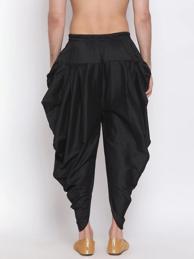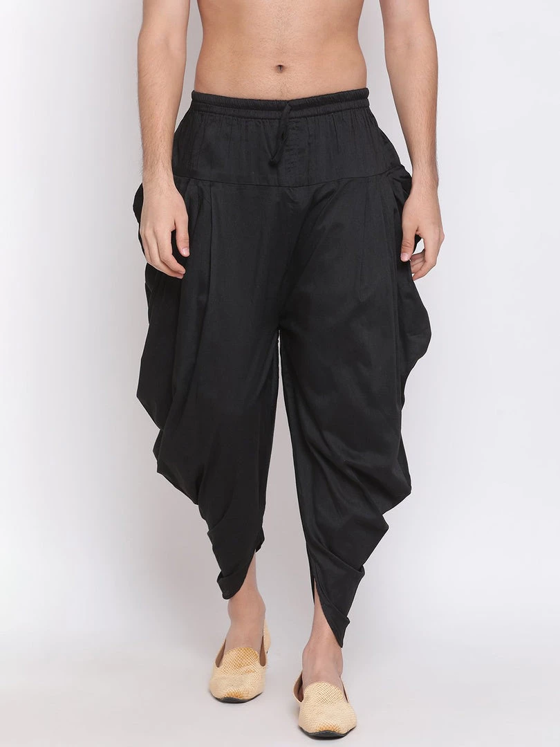 Black solid dhoti pants with pleats forming cowl on sides, has an elasticated waistband with draw-string closure