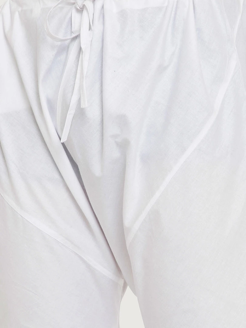 White color solid churidar, drawstring closure