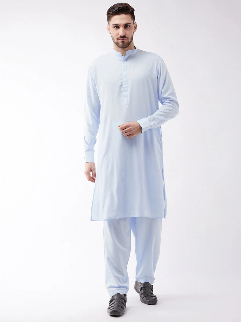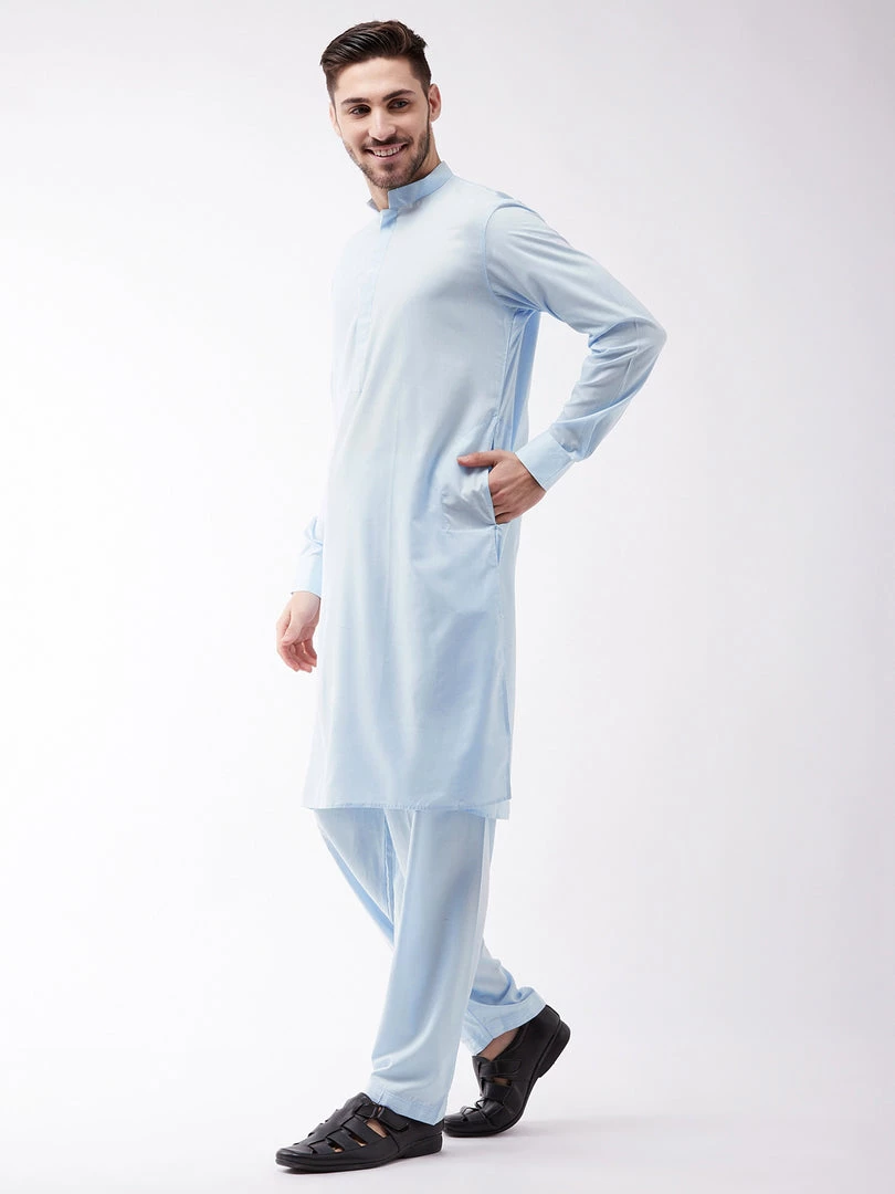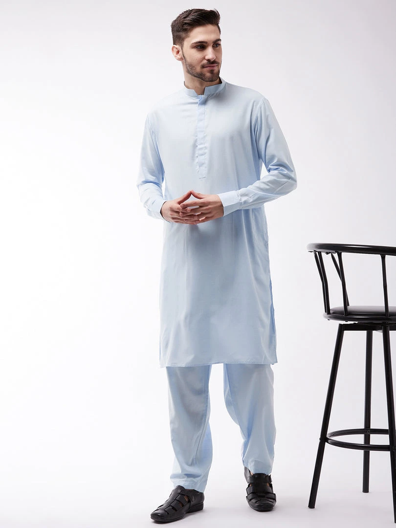 Blue solid kurta with solid pyjama.