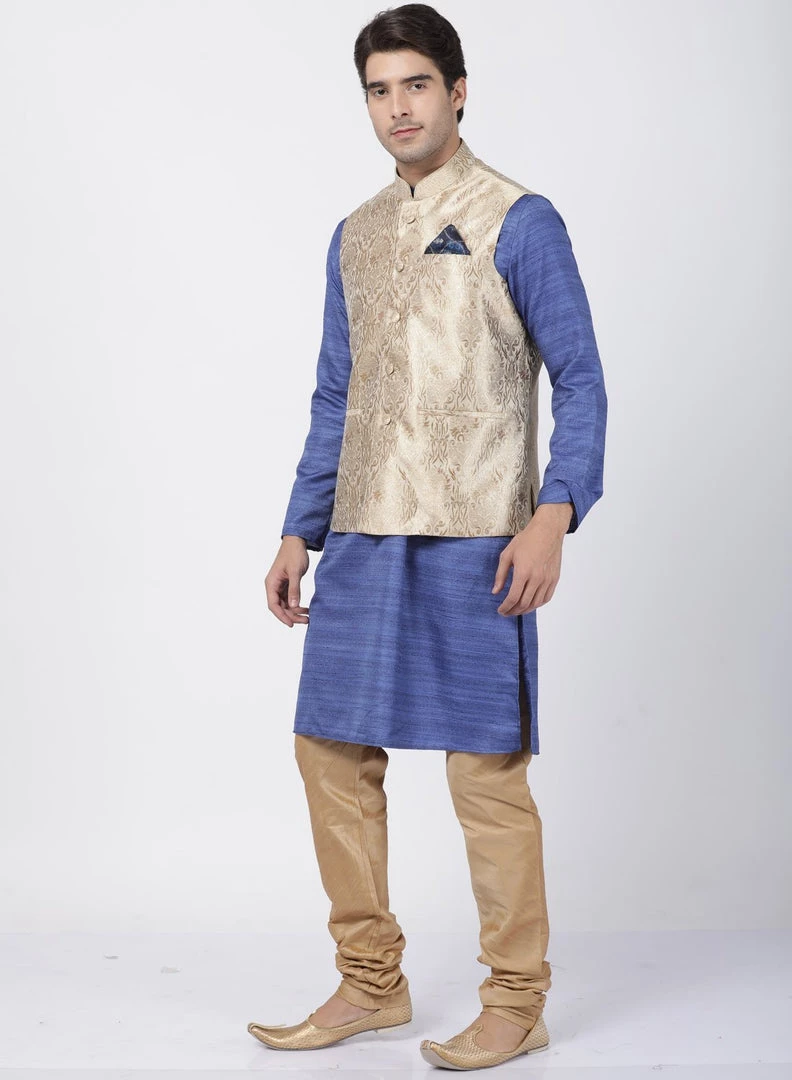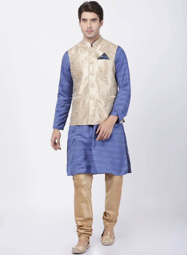 This elegant and trendy Kurta set from VASTRAMAY will be a great add-on to your ethnic collection. Team it with a pair of semiformal shoes or Kolhapuris to get the complete look