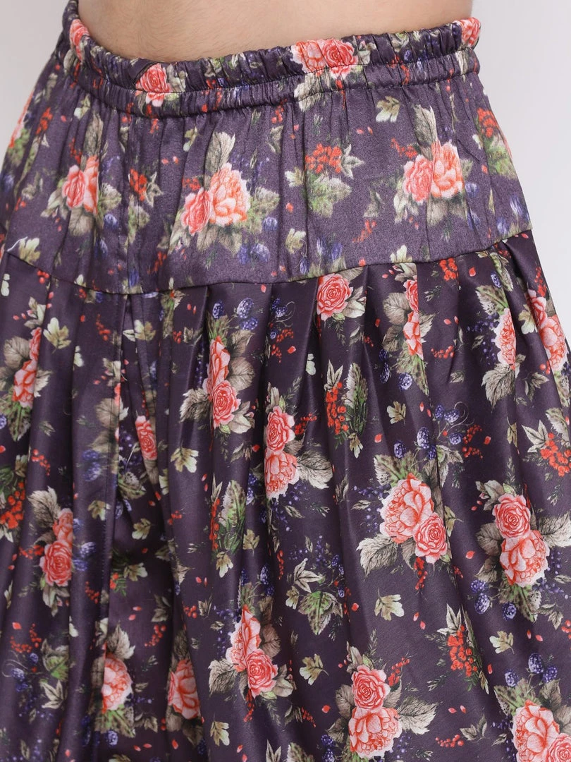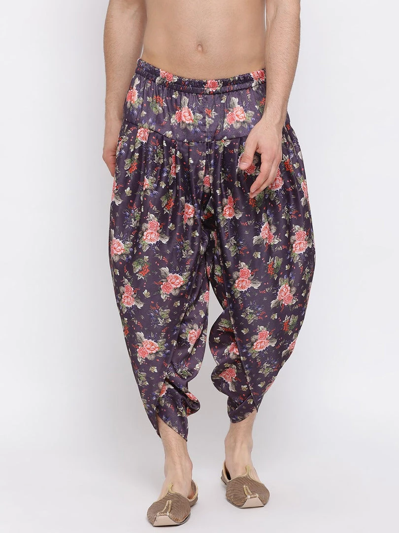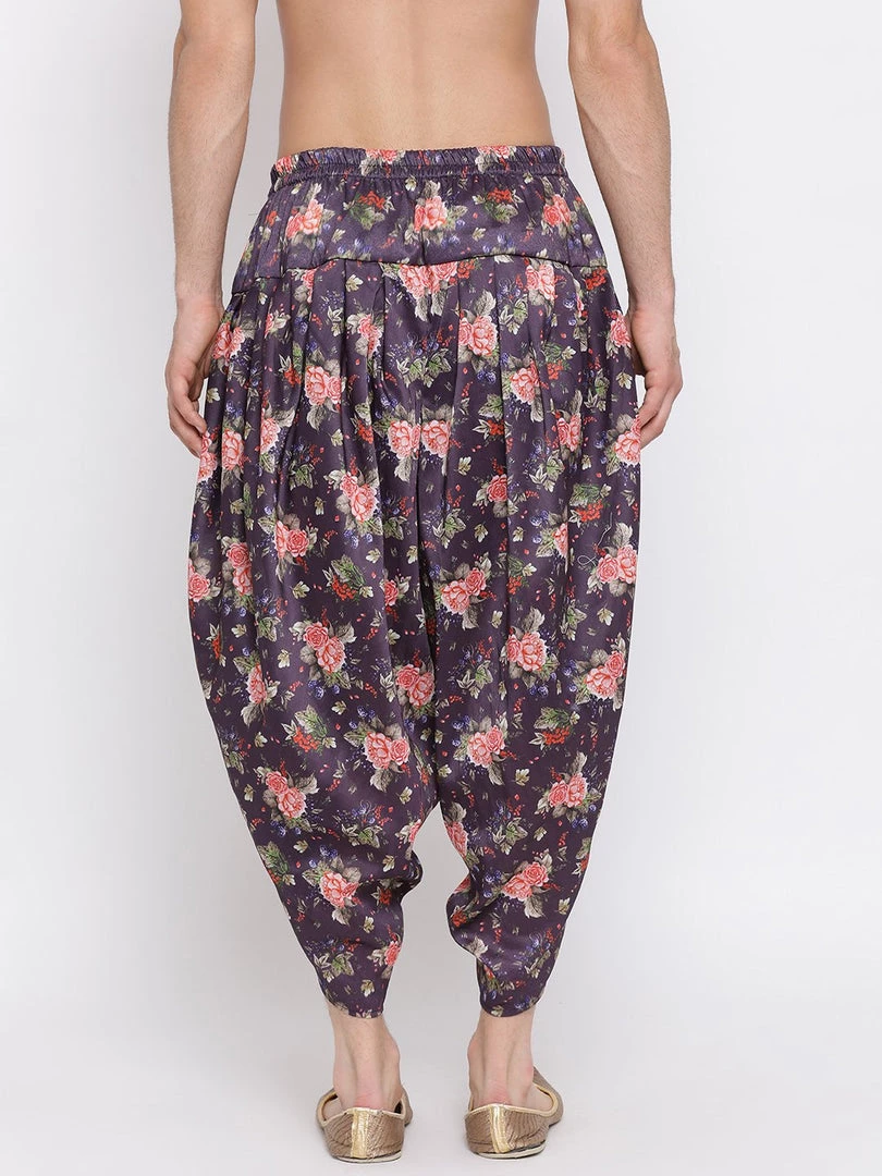 Purple Floral Printed color solid Dhoti Pants, drawstring closure
