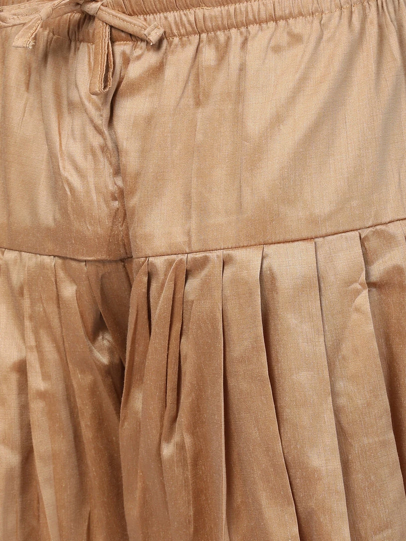 Golden solid dhoti pant, has elasticated waistband and drawstring closure