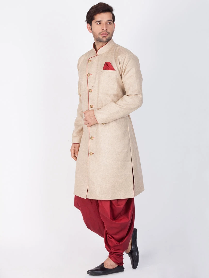Vastramay brings to you this stylish yet comfortable Sherwani Set. Adorn it for a perfect Classy & Trendy look. Pair it with a juti or a mojari for the Royal look.