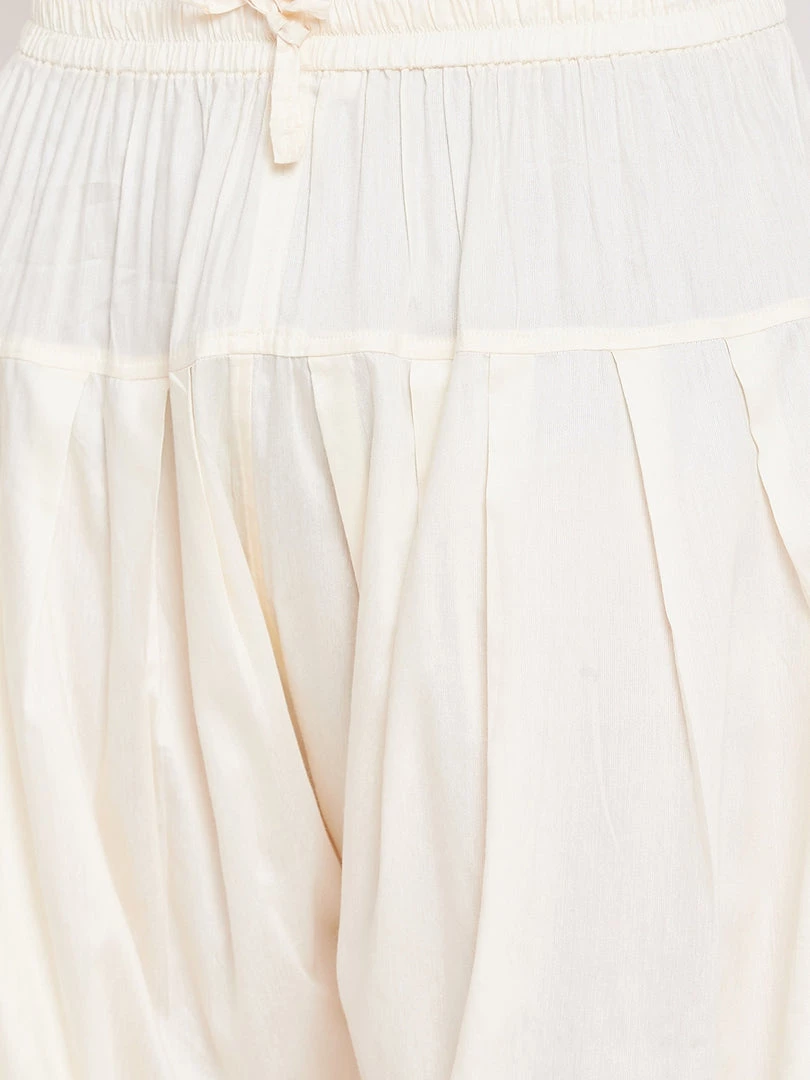 Off white solid patiala, has elasticated waistband and drawstring closure