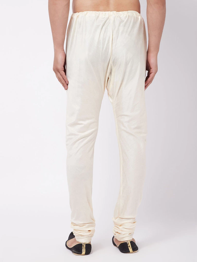 A pair of cream solid mid-rise slim-fit churidar has a drawstring closure