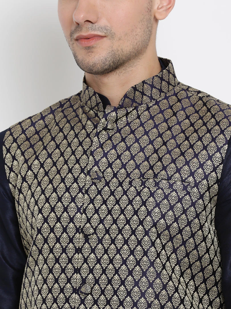Dark blue solid kurta with solid dhoti pant and Nehru jacket