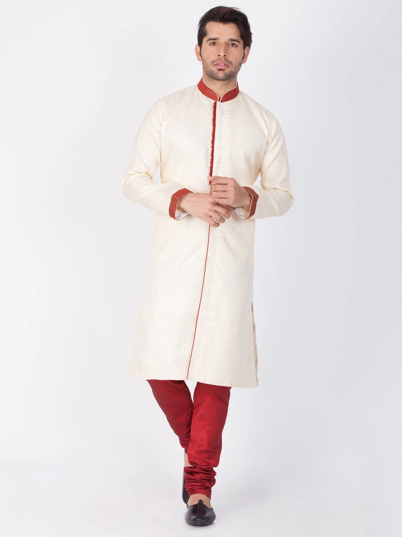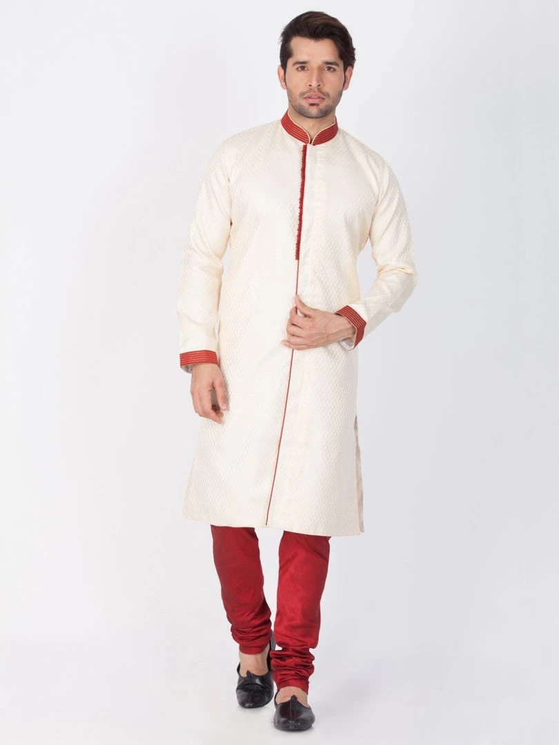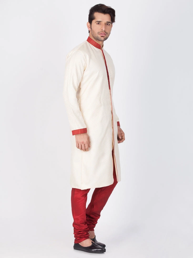 Sport this classic sherwani set from VASTRAMAY this season. Dress this piece up with your favorite accessories and head out to any family event in style.
