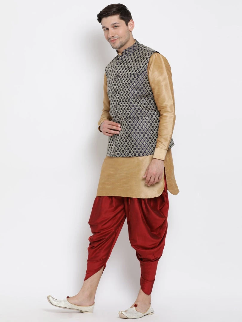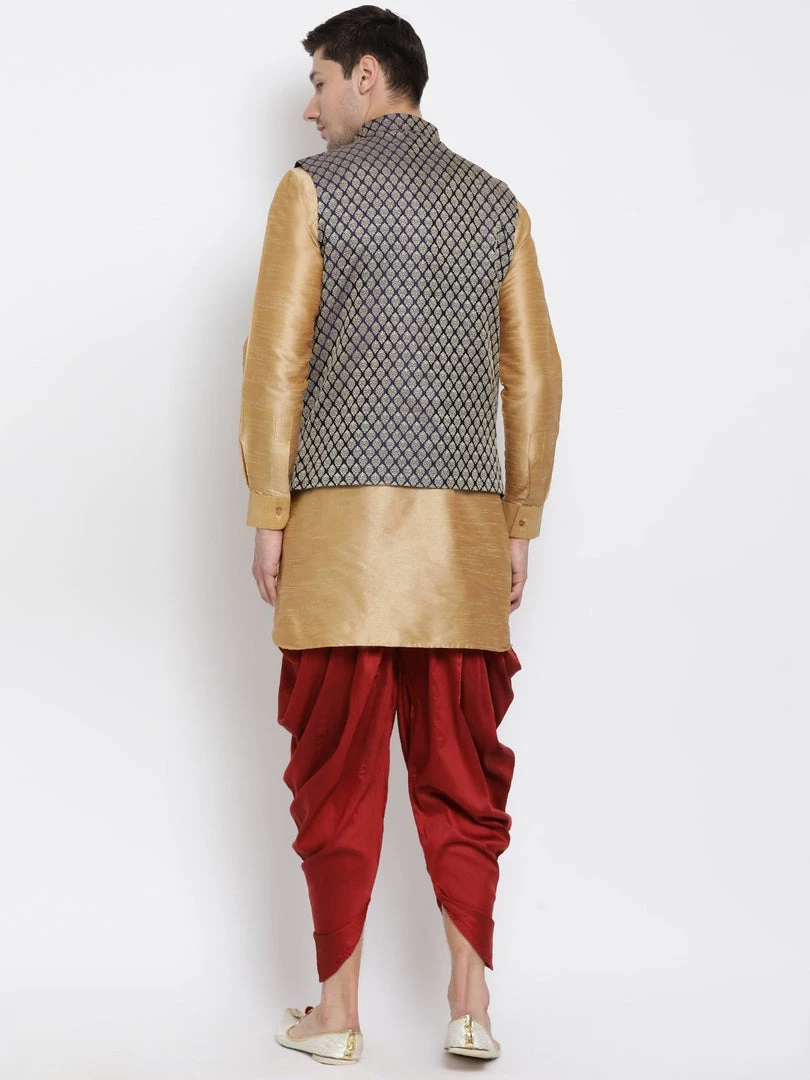 Gold solid kurta with solid dhoti pant and Nehru jacket