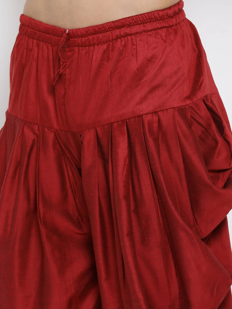 Maroon solid dhoti pant, has elasticated waistband and drawstring closure